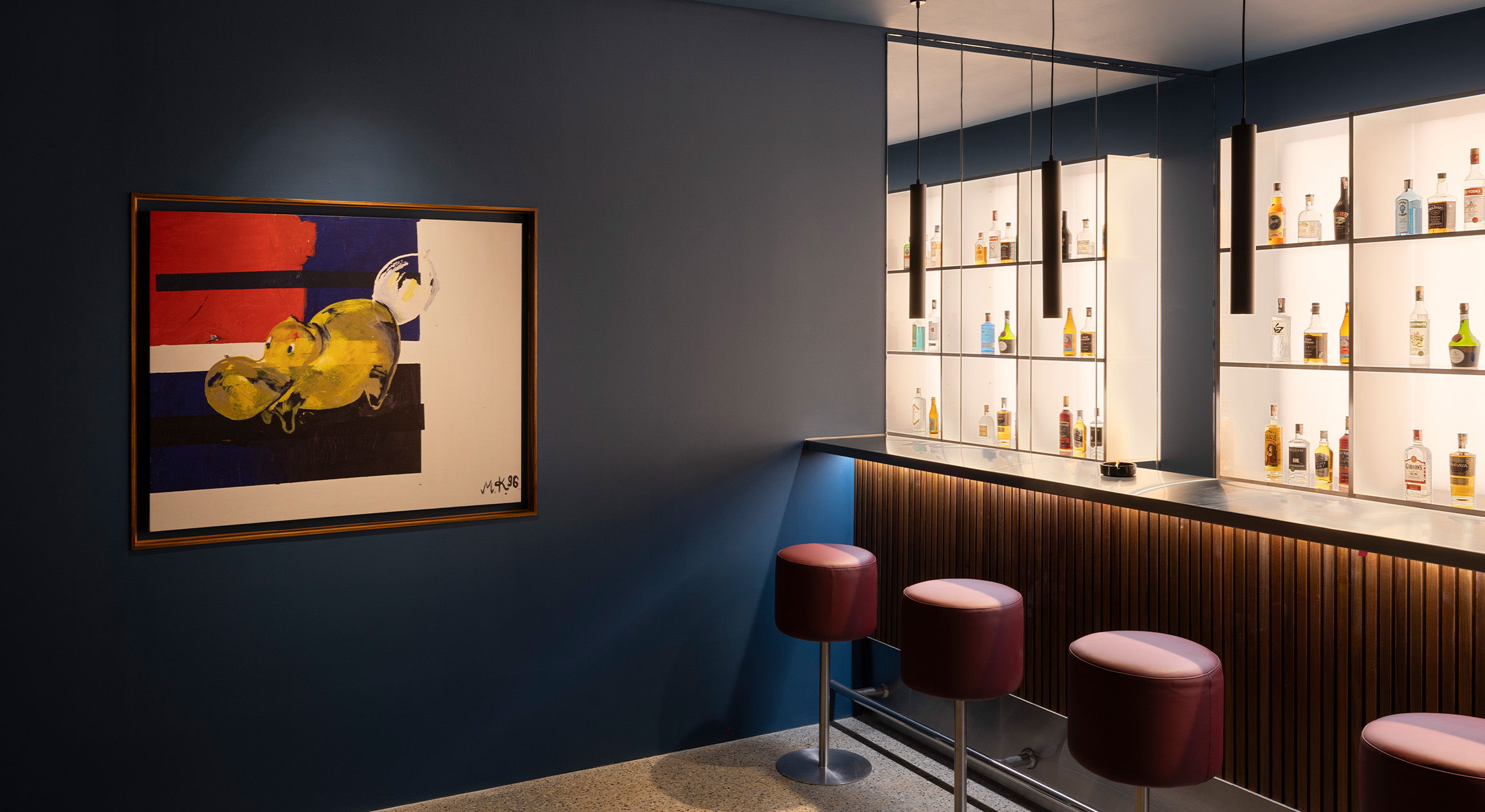 Появление буквы K в названии бара неслучайно. Проект Эльмгрина и Драгсета — дань уважения немецкому художнику Мартину Киппенбергеру. В павильоне выставлена его оригинальная картина 1996 года. Бар, рассчитанный всего на шесть человек, будет открыт лишь раз в месяц. Несмотря на ограниченный доступ, стеклянные двери позволяют заглянуть внутрь даже в нерабочие дни.