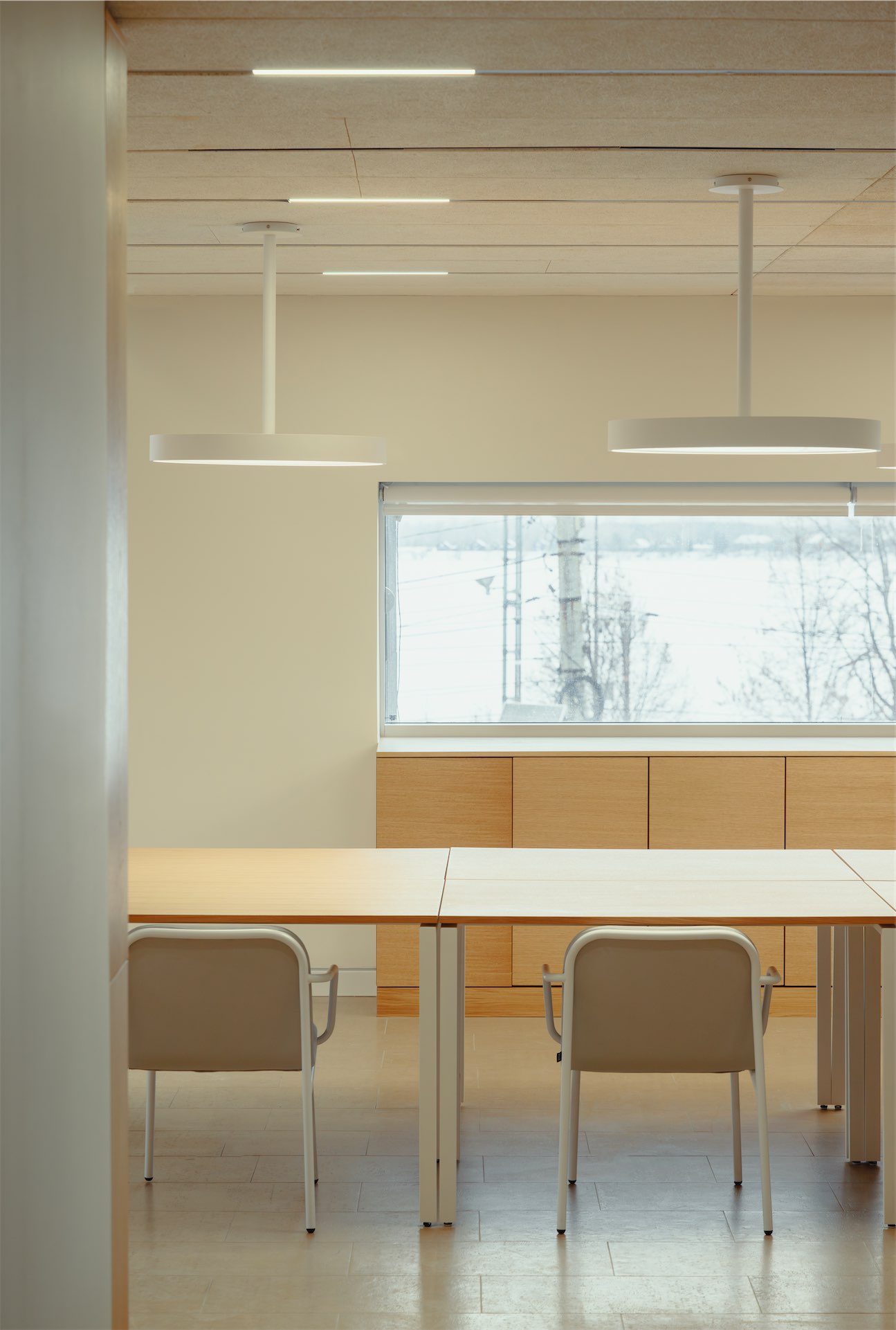 На первом этаже располагается открытое общественное пространство с книжным магазином, кофейней и залом А для выставочных событий, доступных для свободного посещения. Программы выставочных залов B и C предполагают платный вход, но по демократичной стоимости. На третьем этаже расположены библиотека и читальный зал, лекторий, зоны для медиации. Кураторами и архитекторами задумано, что здание работает как образовательная платформа. Также в пространстве галереи три мастерских: керамическая с печами Nabertherm, шелкографическая, где есть станок Thieme, и универсальная студия. «Производство, обучение и выставочное дело соединяются в одном объеме, что оказывается пока редким для региона форматом», отмечает Людмила Патрати. Гибкие трансформируемые пространства адаптированы для программы художественных резиденций.