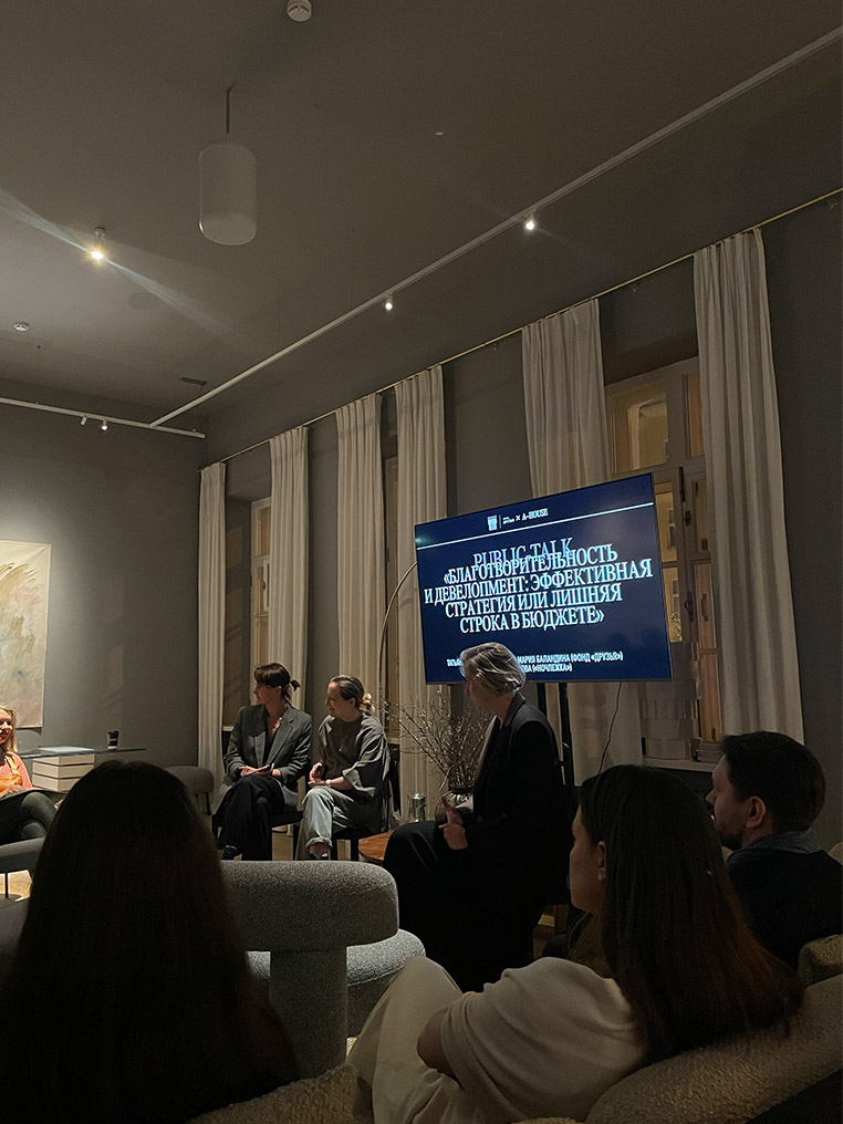 В начале 2025 года просветительская платформа A–House совместно с благотворительным фондом «Друзья»* запустила цикл встреч в формате public talk «Благотворительность и девелопмент: тренды и возможности», позволяющий расширить взгляд на архитектуру и дизайн, взглянуть на девелоперскую деятельность через призму социальной повестки, познакомить сообщество с «нескучной» благотворительностью и последними трендами этой сферы.