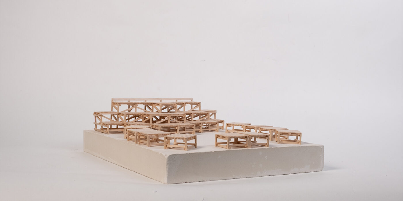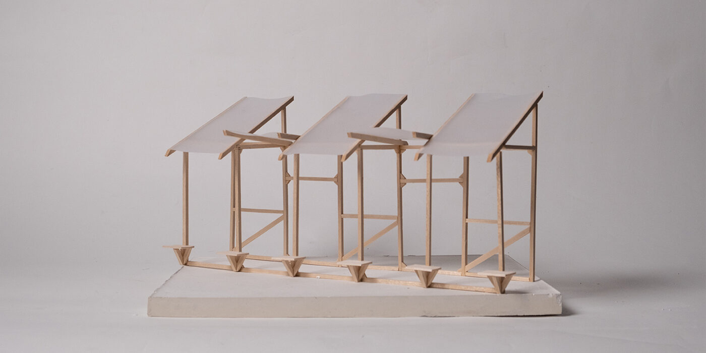В начале сентября участники студии съездили в Дубну, изучили кампус, пожили в общежитии и пообщались со студентами. После чего был сформулирован набор пространственных проблематик. Решением одной из них стало создание быстровозводимых тактических объектов.