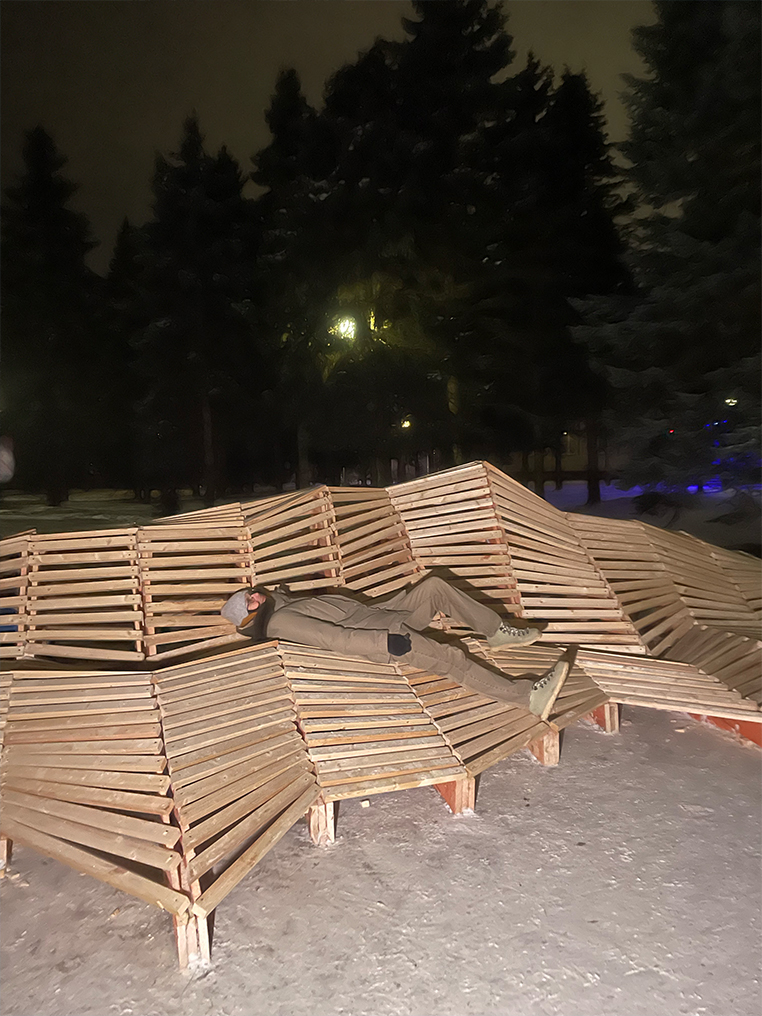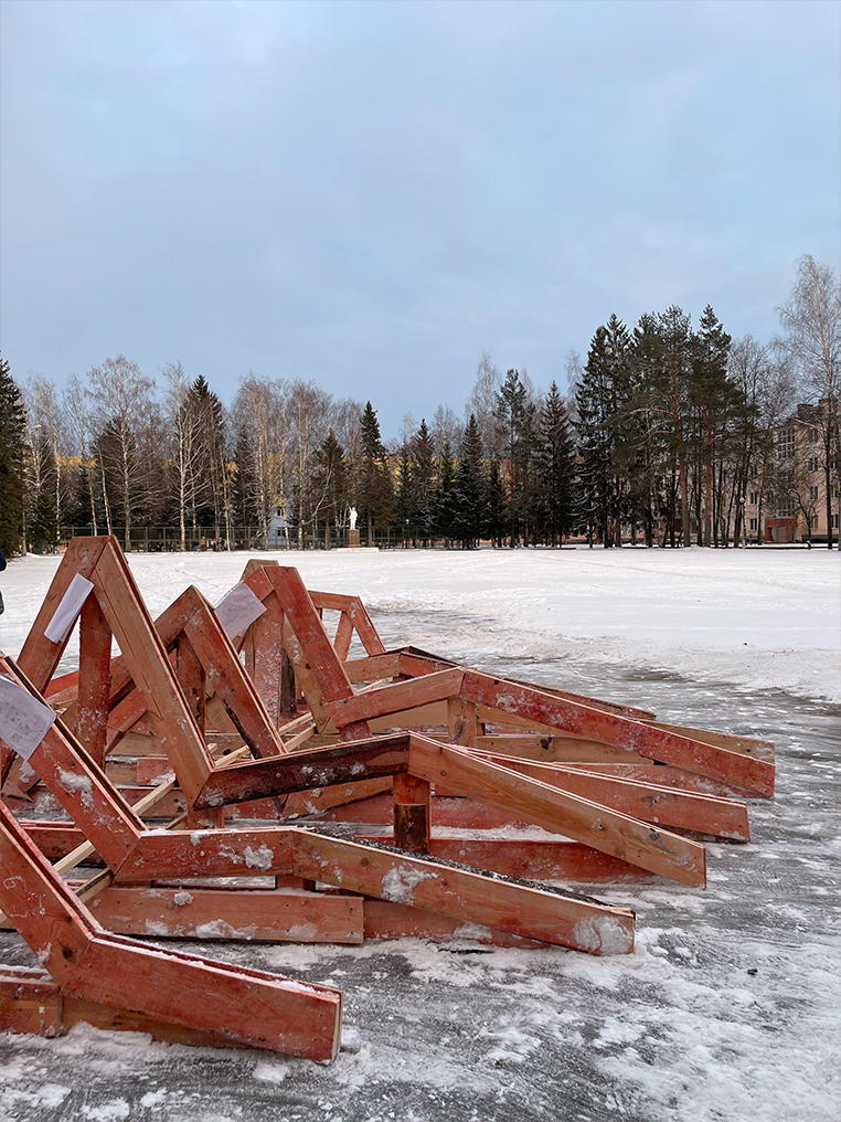 Для студии МАРШ главная цель такого воркшопа состояла в строительной практики студентов. Чтобы понять, как создается архитектура и реализовываются объекты, нужно самим почувствовать сопротивление материала и среды. Наши ученики разработали 18 объектов, но, к сожалению, не все из них могли быть воплощены, хотя все они составляют цельную концепцию генплана. Даже работая над одним из них, ребята смогли прочувствовать работу, сложность и реальность решений. Вес доски, размер самореза и усилие, с которым надо вкрутить его в замерзшую доску, – все является важным этапом развития и реализации проекта.