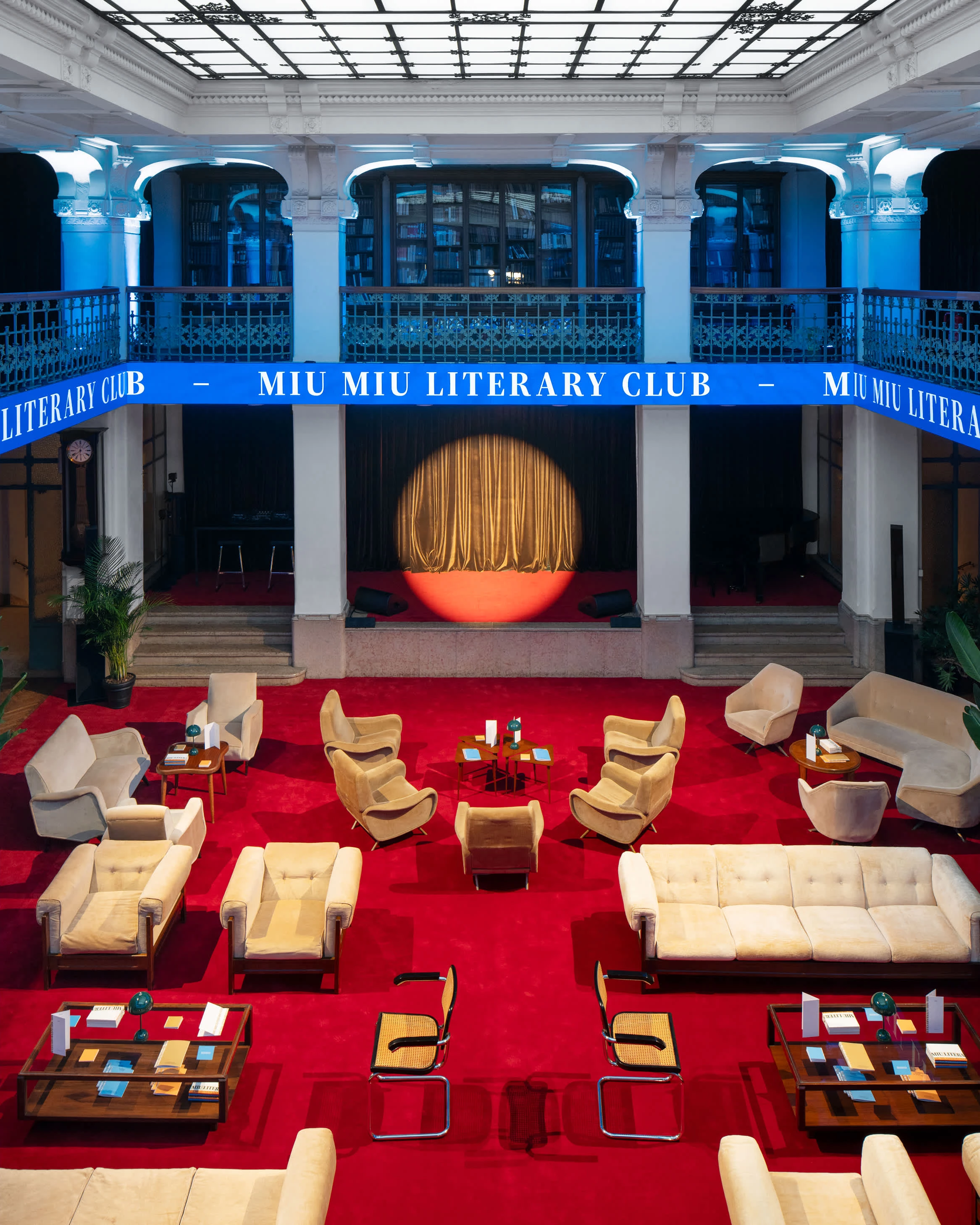 Самая длинная очередь случилась на проекте Miu Miu. Казалось бы, можно порадоваться — выстроилась она не за аперолем или для того, чтобы поспать, но в филологический клуб Circolo Filologico Milanese, где разместился проект Miu Miu Literary Club, посвященный женскому образованию (читали Симону де Бовуар и Фумико Энти!). Впрочем, для тех, кто провел в ней несколько часов, это слабое утешение.
