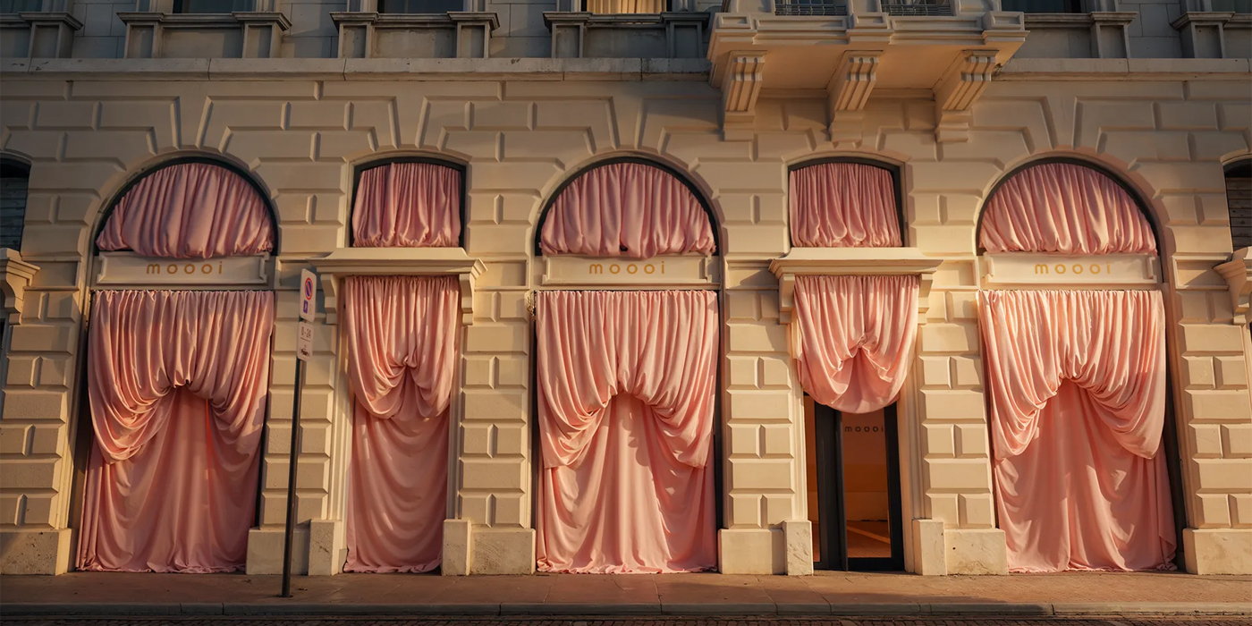 Отсылки к театру и перформативный подход встречались и в других проектах недели дизайна. Так, в окнах первого в Милане шоурума голландского бренда Moooi появился розовый занавес от Андреса Райзингера, который пришел в мир дизайна из 3D-вселенной (изначально занавес развевался лишь в воображаемых декорациях) и чувствует себя здесь как дома.