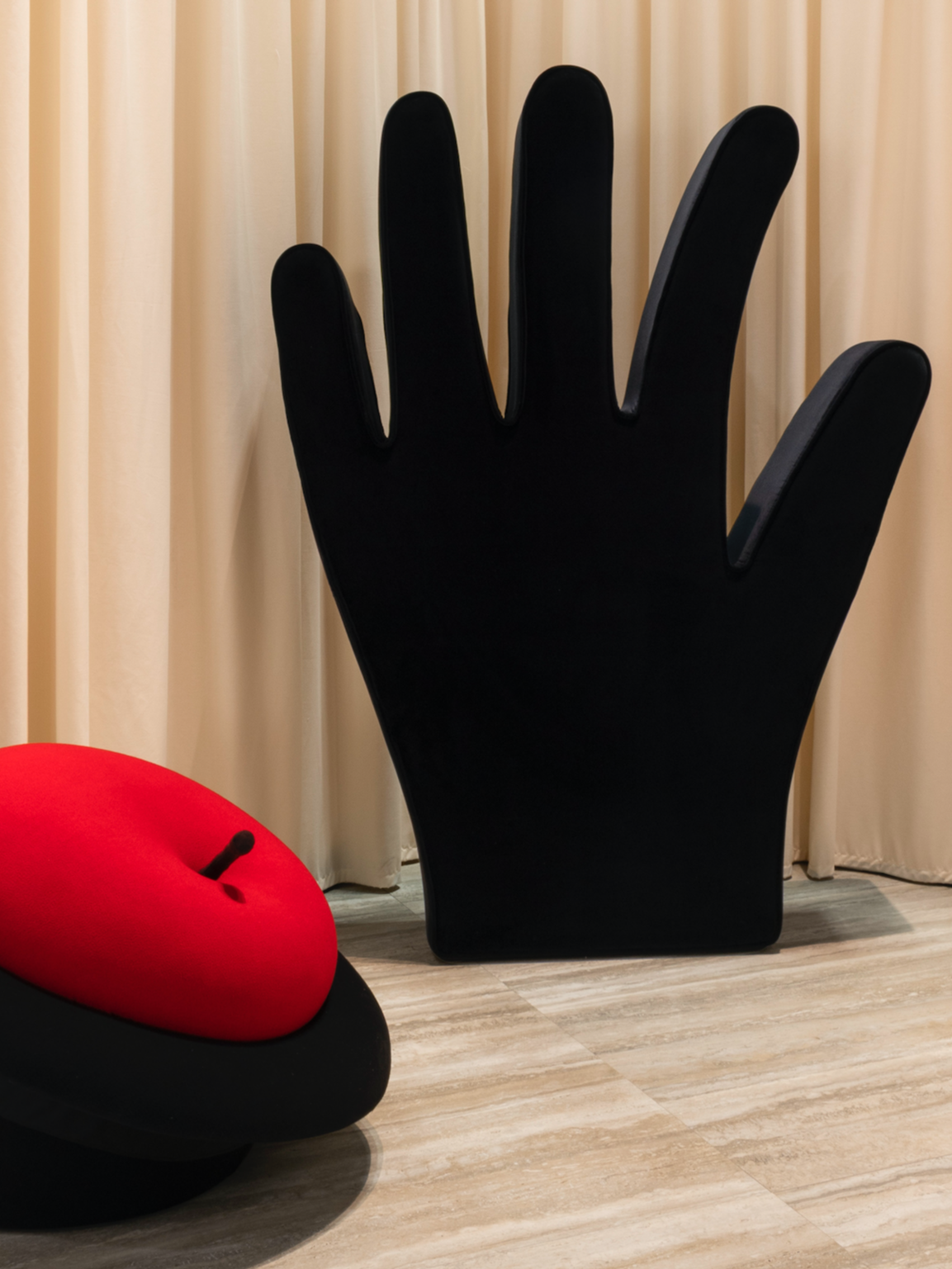 Соседний стенд Gufram был посвящен итальянскому радикальному дизайну. В дополнение к узнаваемым моделям здесь можно было увидеть диван Mano в виде руки от художницы и модельера Чинции Руджери, созданный в 2000-м и дебютировавший в коллекции этого года, зеркало Sculpted Mirror от современных дизайнеров Snarkitecture и серию работ Кита Харинга для парка аттракционов Luna Luna, масштабного арт-проекта, который не взлетел в 1980-е, но вернулся к жизни в 2020-е благодаря стараниям музыканта Дрейка.