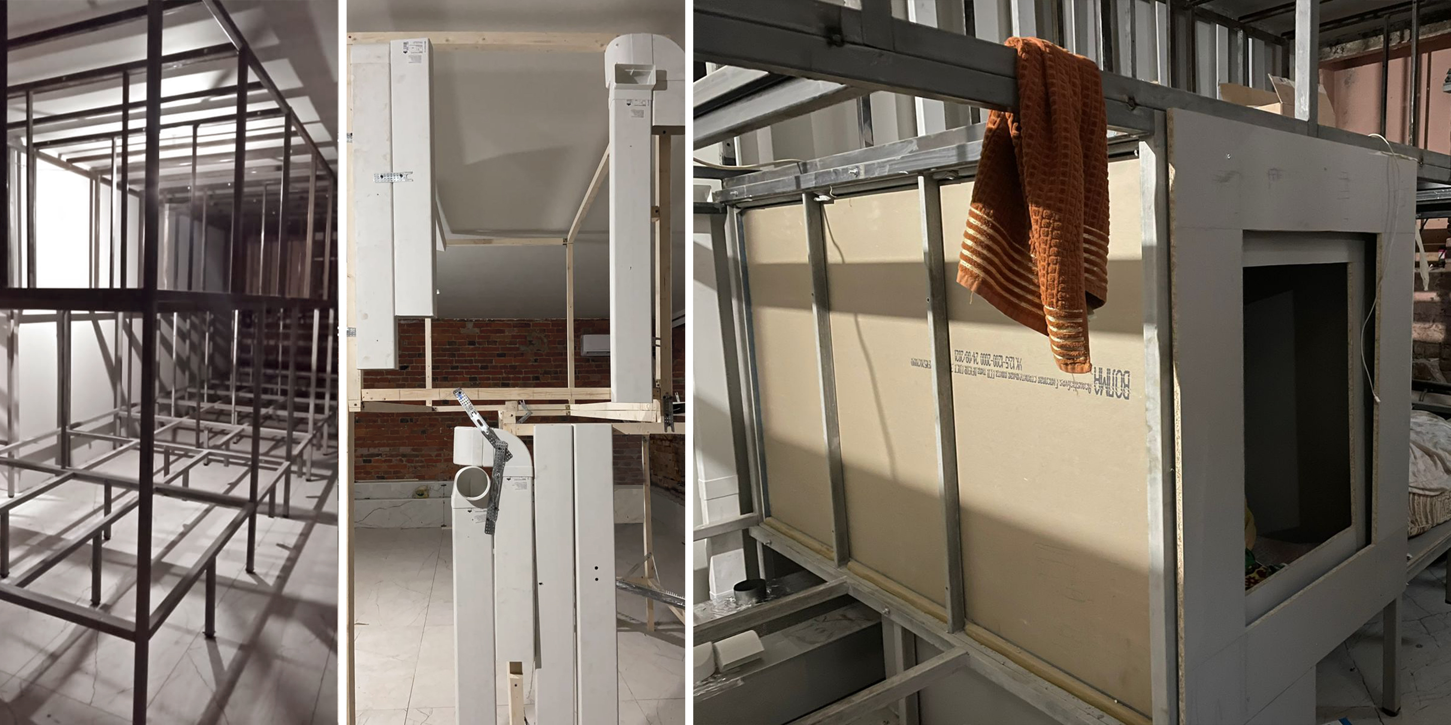Затем вместе с конструкторами мы рассчитали прочность и придумали, как сделать конструкцию, предусмотрев вентиляцию, шумоизоляцию и хранение вещей гостей. Основа капсулы – металлический каркас, на который крепятся панели. Между стойками каркаса расположена шумоизоляция, а фронтальная панель имеет дверь, за счет чего капсула становится абсолютно приватной. Все капсулы имеют приток и удаление воздуха за счет системы вентиляции, расположенной в технических помещениях и проходящей по всем помещениям. Хранить вещи можно в ящике, расположенном в нижнем ярусе и на крючках на стене напротив капсулы. Также для крупногабаритного багажа предусмотрена камера хранения. Капсулы можно разобрать и перевезти в другое место, что очень удобно.