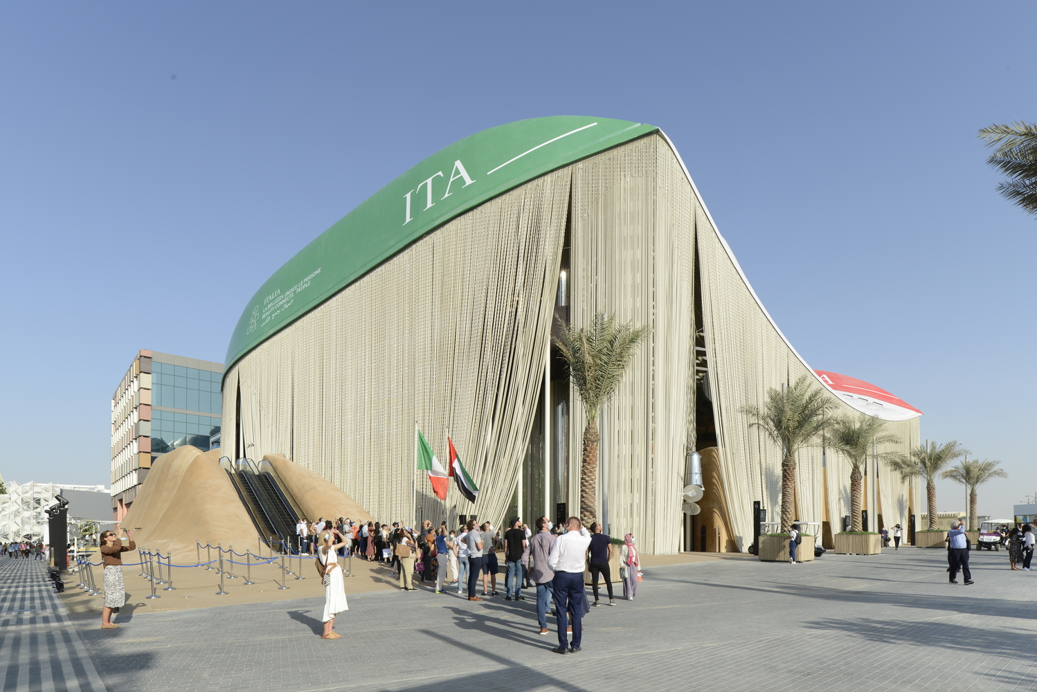 Павильон был задуман как эксперимент в области многоразового использования материалов и естественного охлаждения. Конструкция состояла из 150 тонких стальных колонн, поддерживающих три перевернутые лодки, окрашенные в цвета итальянского флага. Между корпусами была расположена кровельная мембрана, дополненная перфорированными металлическими листами для фильтрации солнечного света. Она была связана с системой канатов, изготовленных из переработанных пластиковых бутылок, которые формировали фасадное ограждение и обеспечивали затенение без использования кондиционирования воздуха.