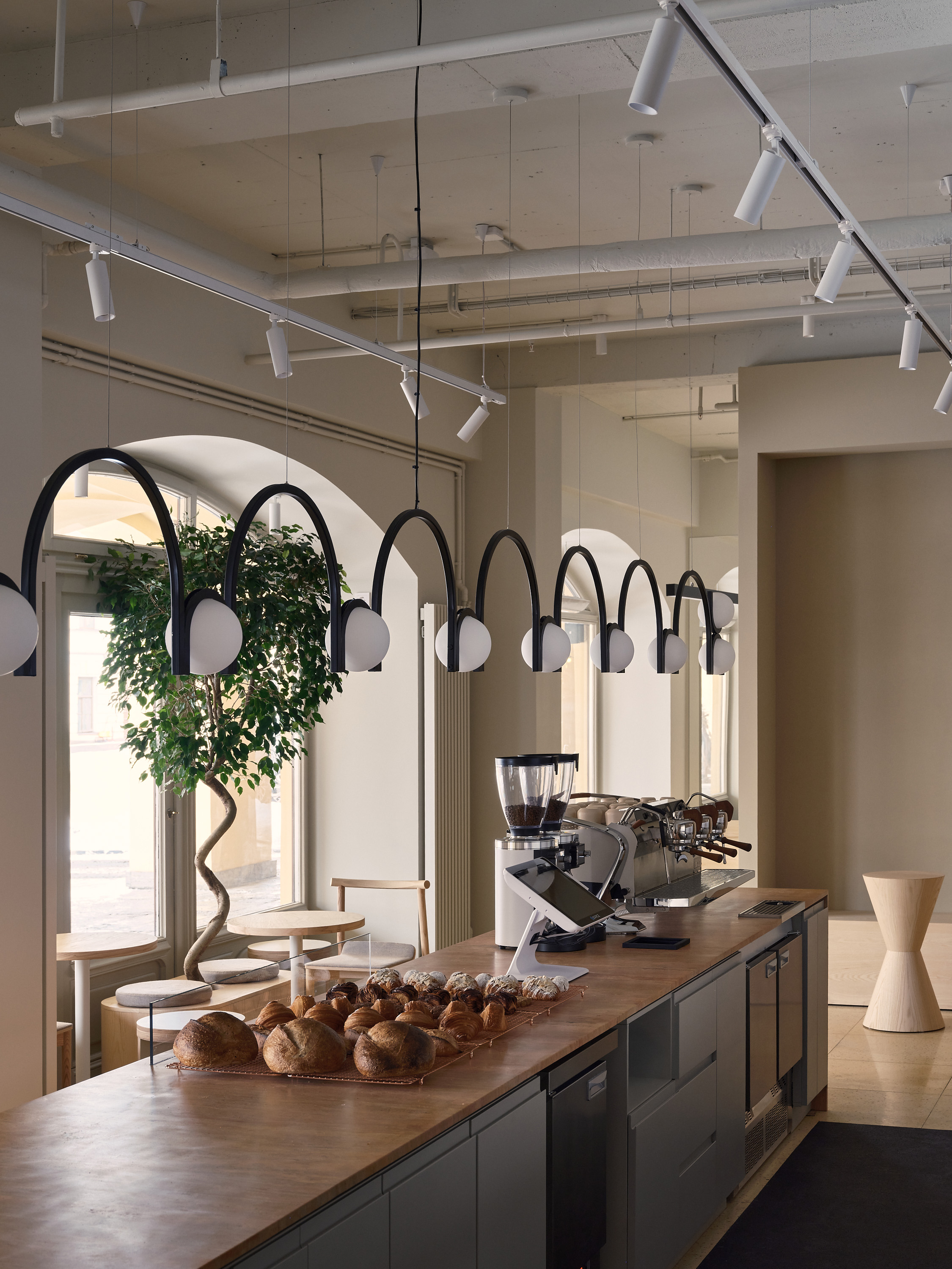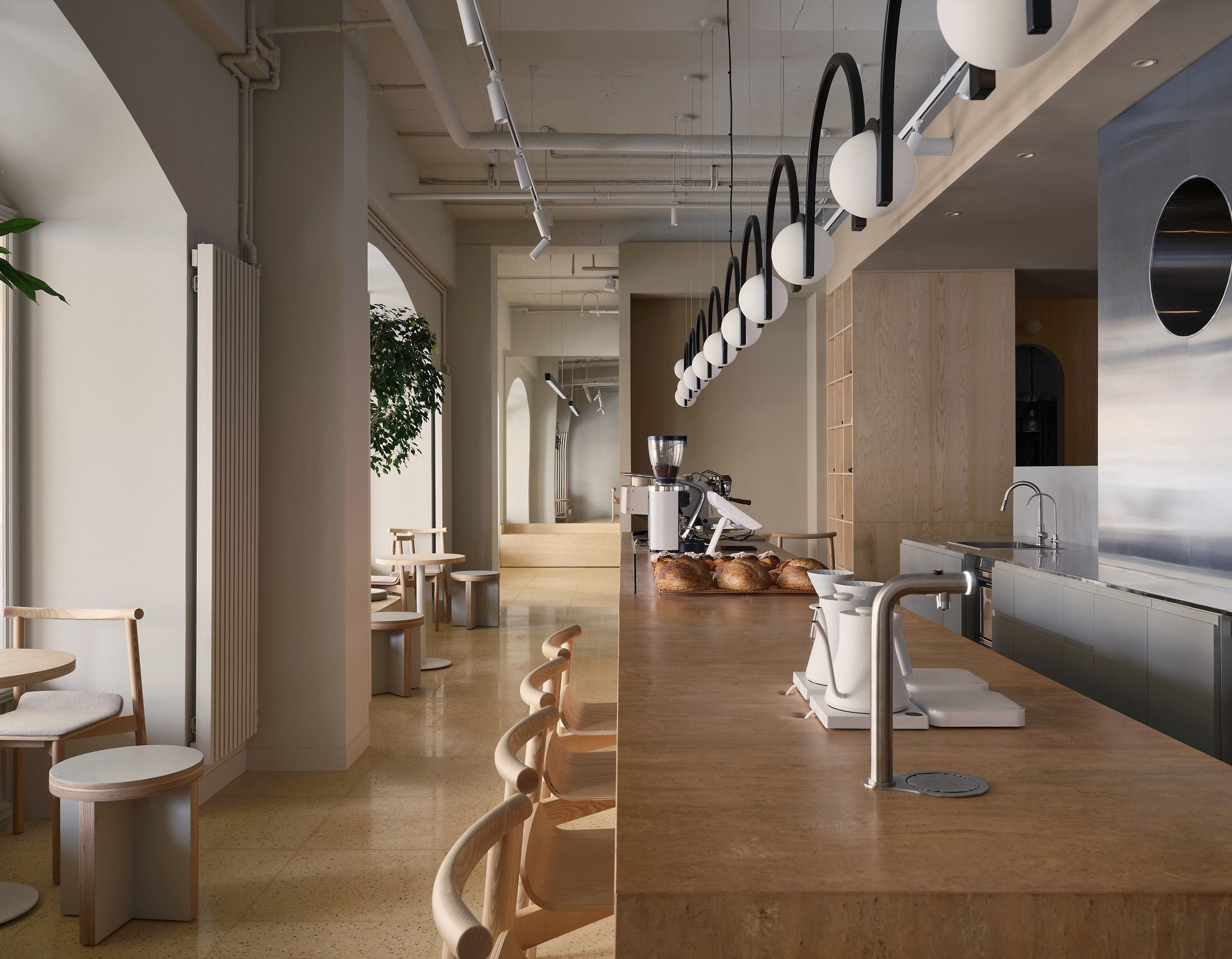 Петербургский проект стал поворотной точкой для сети: как отмечают архитекторы, здесь впервые была реализована идея пространства, объединяющего кофейню спешелти-формата, пекарню с собственной печью и бистро с концепцией all day dining. Новая типология потребовала иного подхода к интерьеру — более мозаичного, гибкого, построенного на интуитивной логике и отсылающего к локальному контексту.