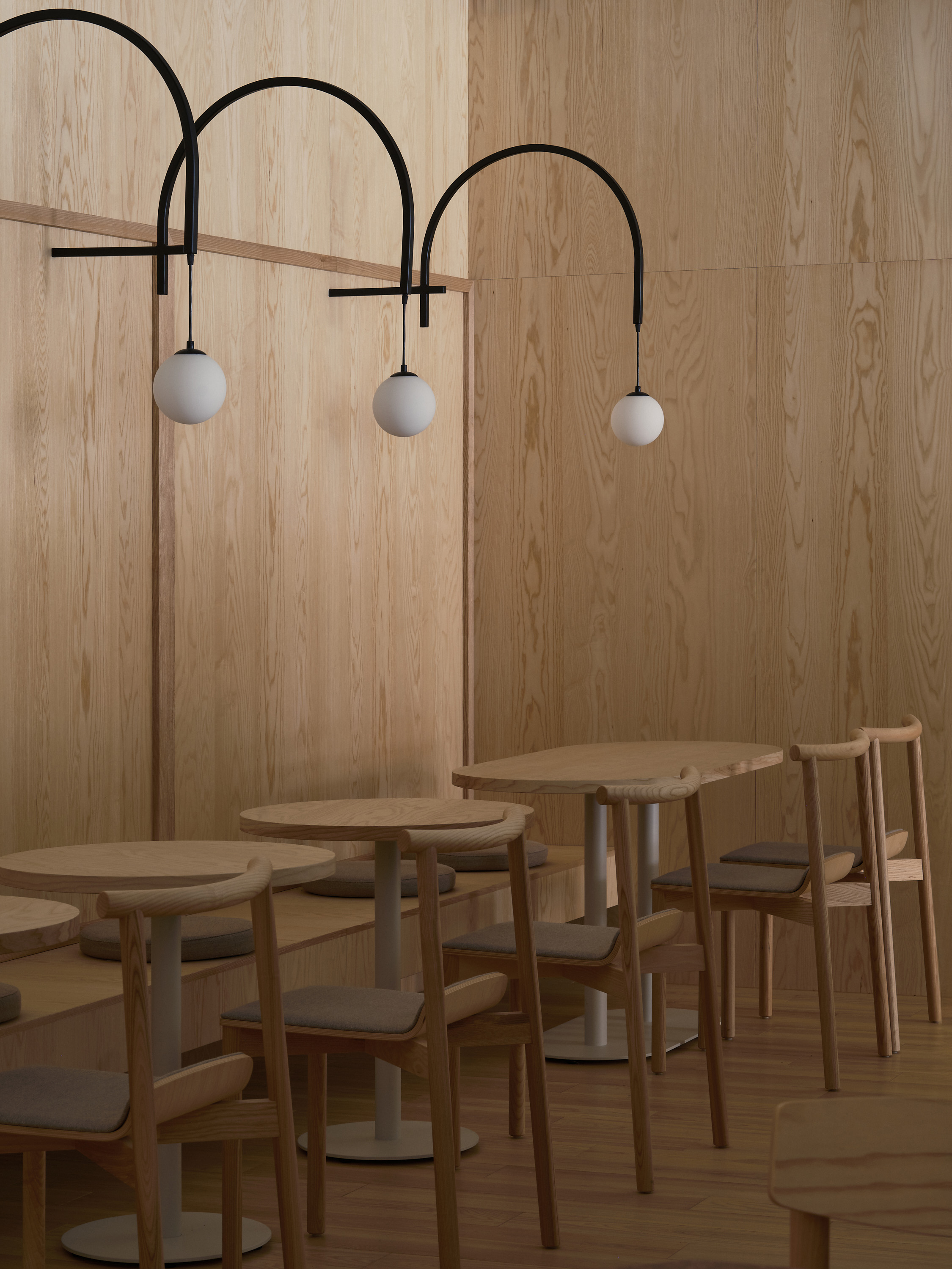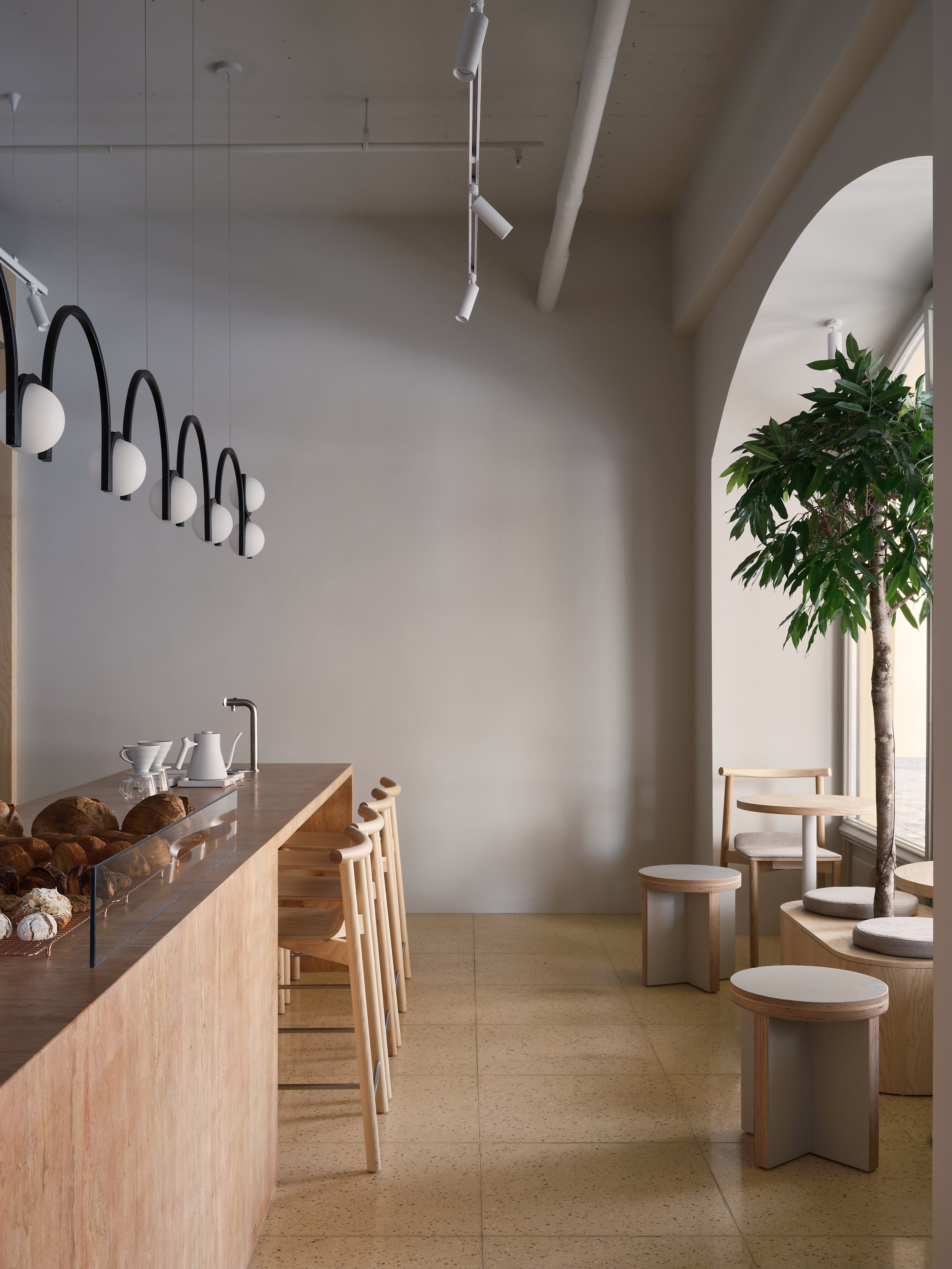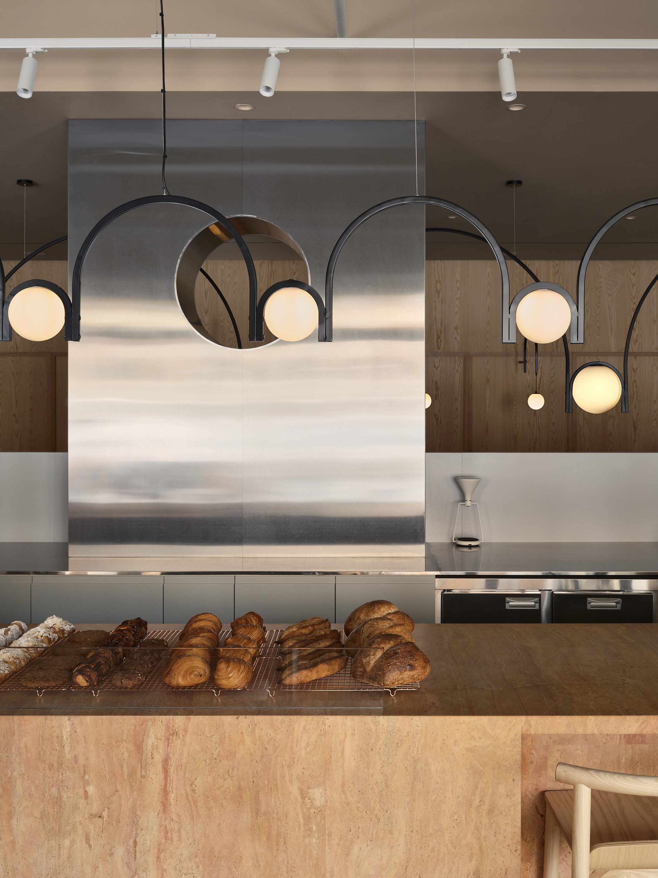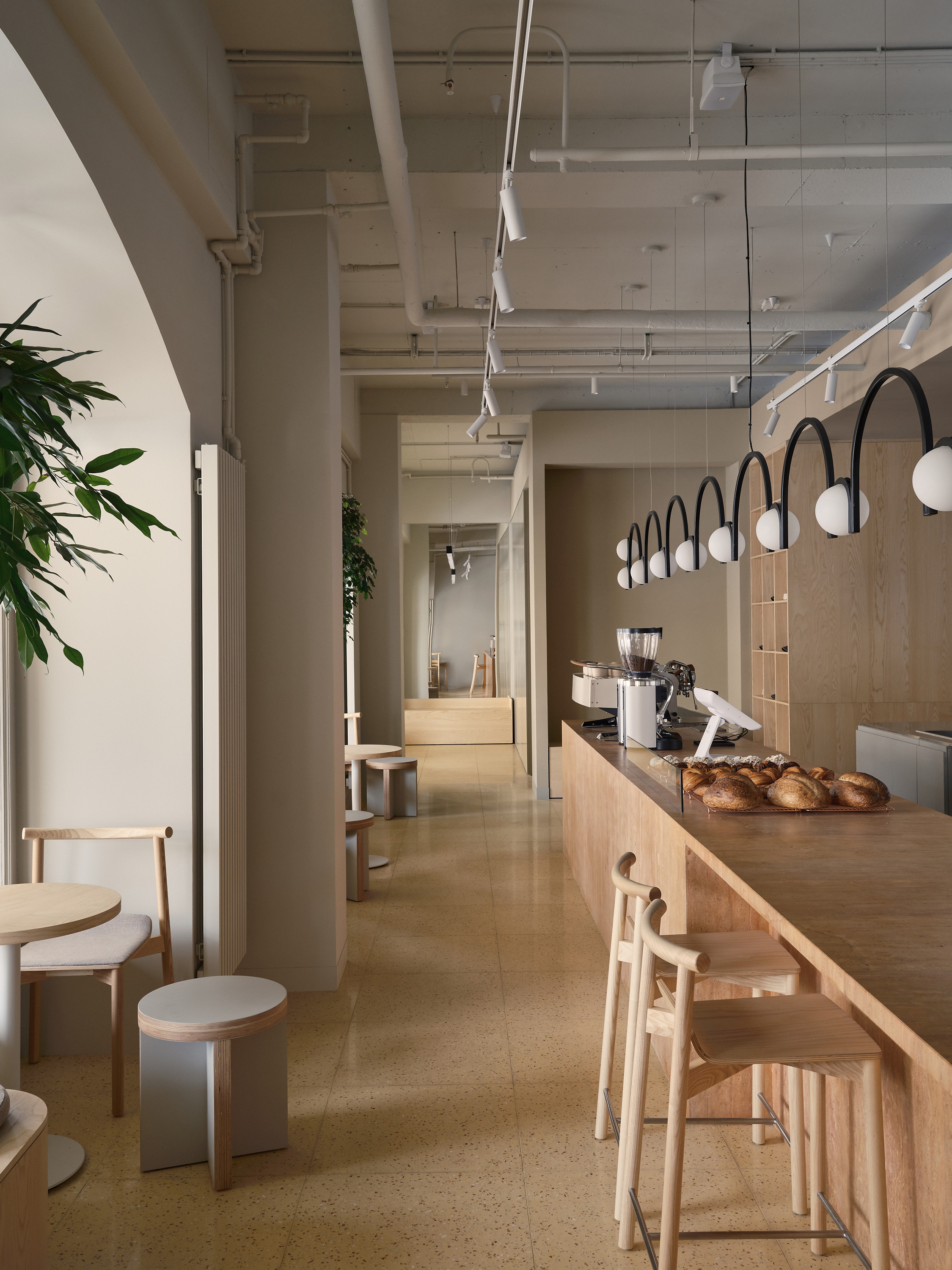 В интерьере отсутствует дополнительная смысловая нагрузка — все работает на атмосферу. По словам команды, целью было собрать элементы так, чтобы они не требовали объяснений, а просто формировали комфортное и узнаваемое пространство. Теплый свет, аромат свежеиспеченного хлеба и кофейных зерен — пожалуй, главное, что важно гостю.