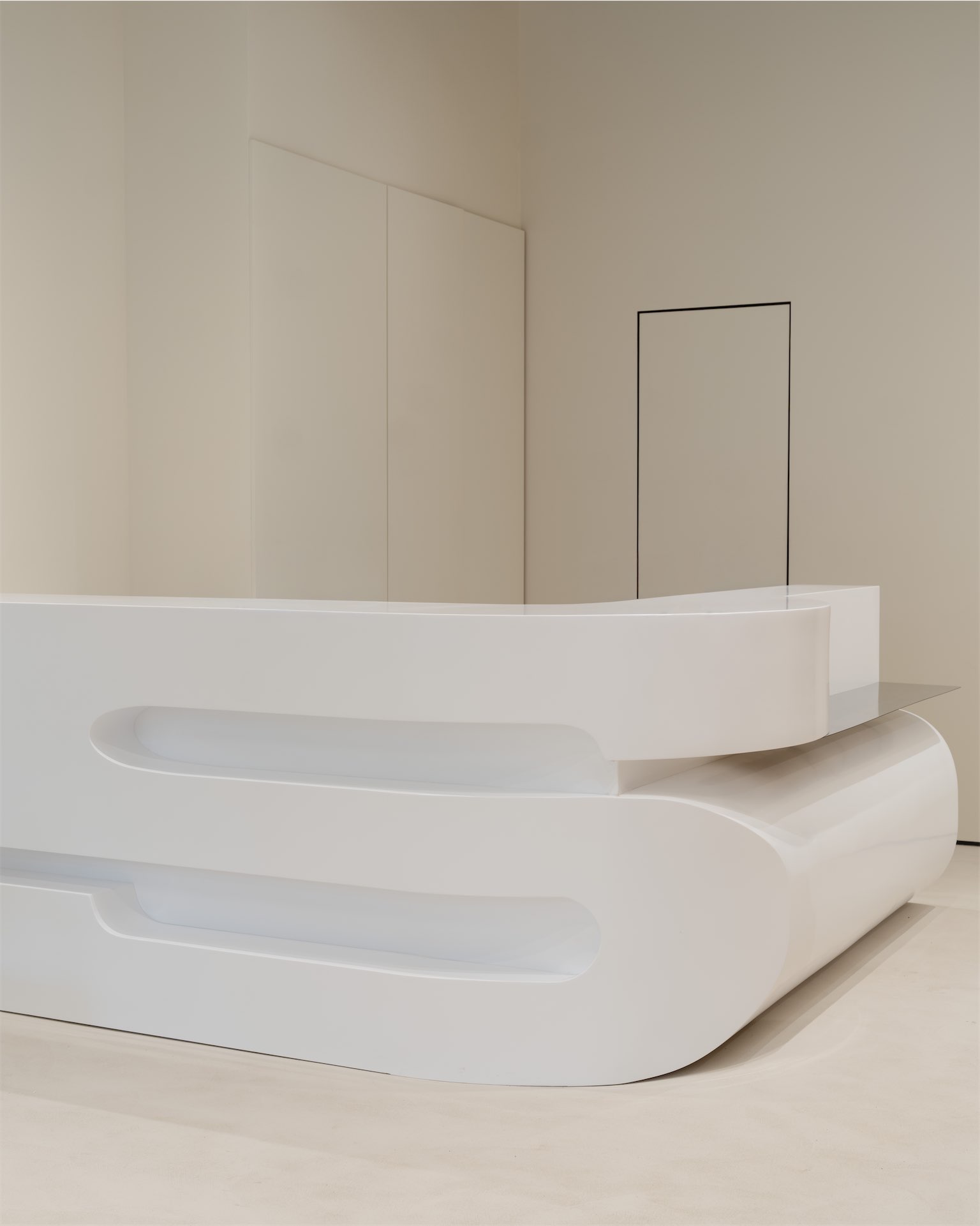 Особое внимание уделено деталям. В интерьере появился ресепшн в форме буквы S в духе Space Age 1960-х годов и овальный потолочный светильник диаметром более семи метров — визуально легкий, но технически сложный, с системой управления и протяженной светодиодной линией.