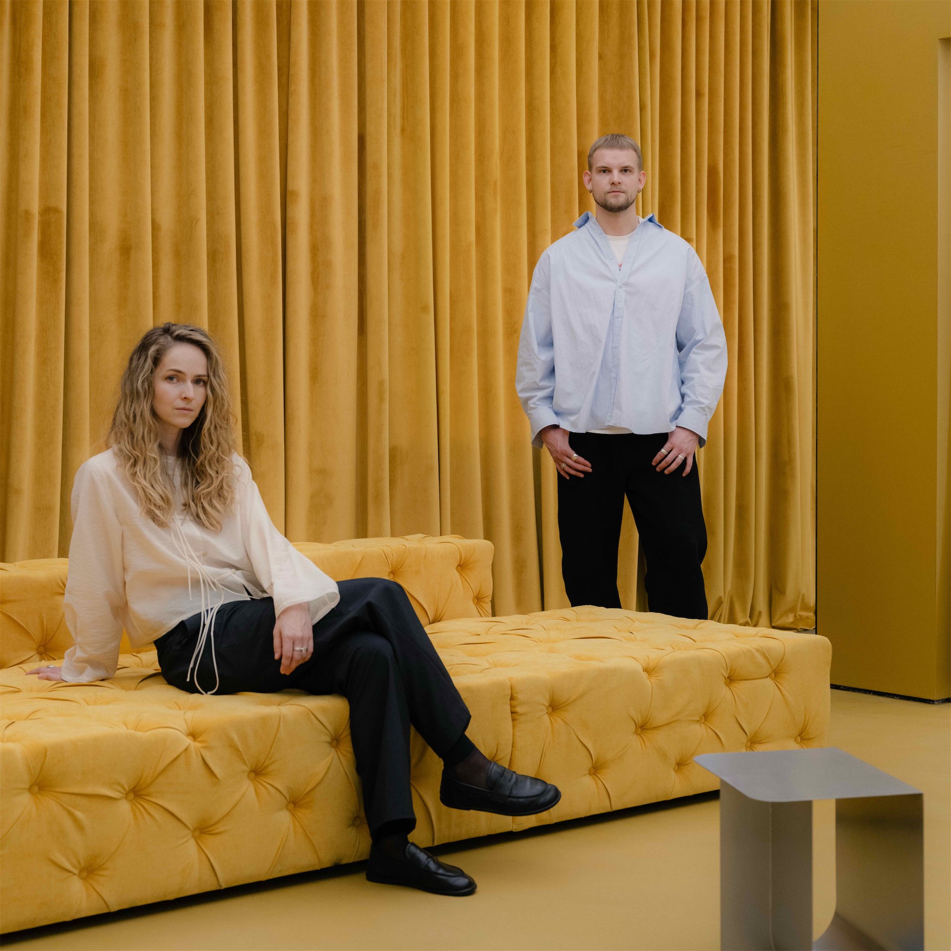 Палитра строится на сочетании горчично-молочных оттенков с легким зеленым отливом и акцентов из дерева, металла и черного. Черный используется как графический инструмент — он подчеркивает геометрию и скрывает инженерные элементы.