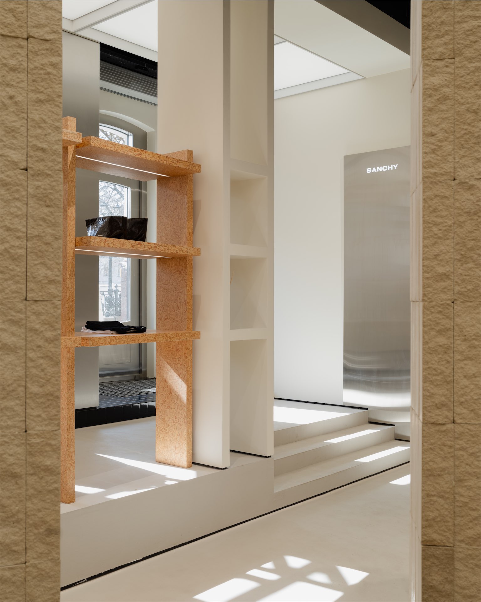 Флагманский бутик Sanchy, спроектированный архитекторами DO buro, открылся 15 апреля на Петровском бульваре, 21. Интерьер построен на ощущении двух разных пространств, перемещаясь между ними, посетитель словно проходит через портал. Контраст зон формирует смену настроения и задает сценарий движения.