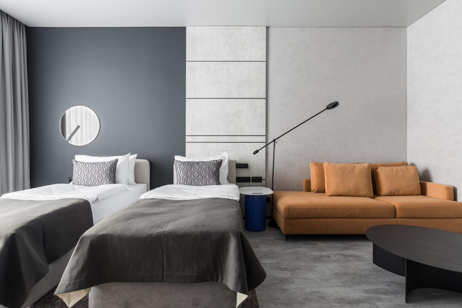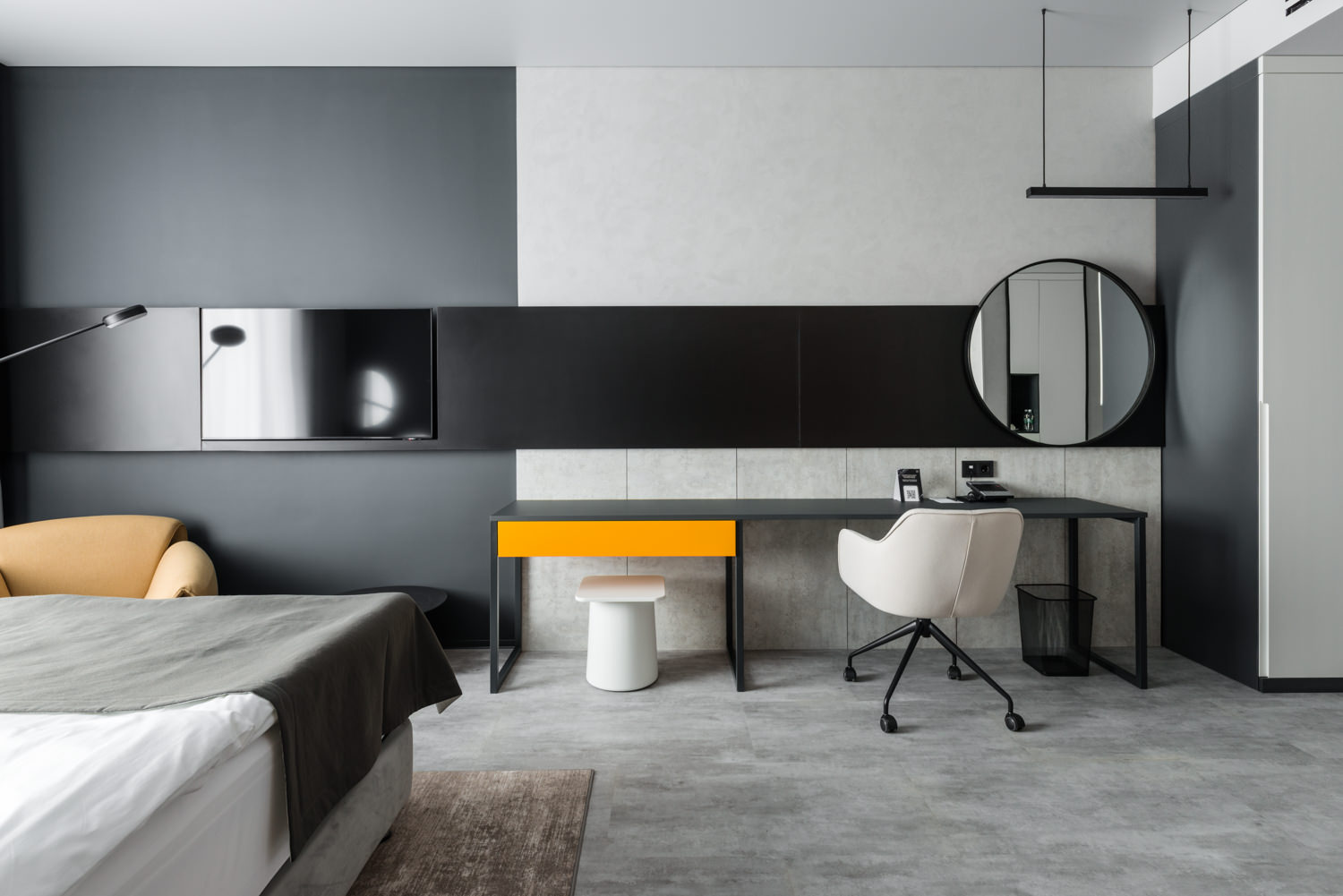 Номерной фонд отеля спроектирован с учетом эргономичности и комфорта: системы скрытого хранения позволяют уменьшить визуальный шум, создавая удобные условия для работы и отдыха. Это особенно важно для гостей, чья профессиональная деятельность связана с высокой информационной нагрузкой.
