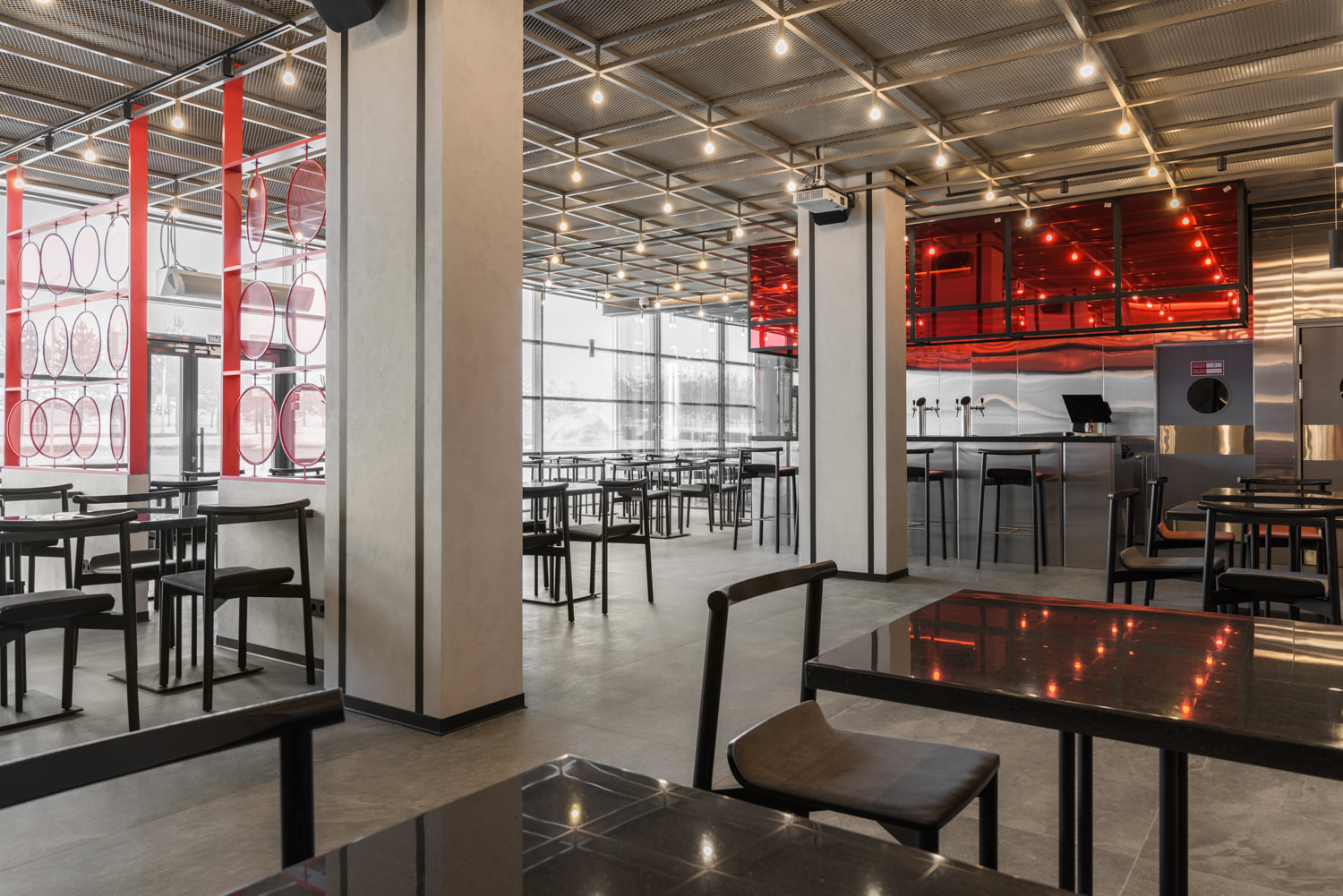 «С самого начала мы понимали, что реализация такого проекта – задача нетривиальная. Необходимо было разработать современный интерьер для пространства, которое отвечало бы требовательным вкусам IT-сообщества. Но мы бесспорно смогли найти уникальный подход, который учитывает аутентичные характеристики региона и предпочтения его жителей. Каждый элемент созданного нами пространства говорит сам за себя. На самых ранних стадиях работы стала очевидна потребность в большем количестве металлических элементов. Мы старались интегрировать их так, чтобы они не просто дополняли интерьер, а становились его акцентами и передавали инновационный и высокотехнологичный дух Иннополиса. Настоящая борьба развернулась за концепцию пивного ресторана. У команды возникло множество идей, каждая из которых заслуживала бы реализации. Но в итоге нашли компромисс, который удовлетворил все стороны. Не обошлось и без казусов, когда наш светильник, который по задумке должен был напоминать кратер, неожиданно приобрел несколько иные формы. В ходе доработок светильники-кратеры все-таки были реализованы, став стильным и функциональным акцентом всего интерьера. Все эти вызовы лишь укрепили нашу команду. Мы смогли распределить задачи таким образом, что стало возможным появление этого поистине уникального пространства, которым мы гордимся», – Александр Морозов, главный архитектор проекта.