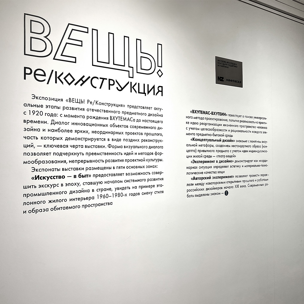 М. К.: Это, конечно, выставка «Архитектура говорит» в Музее архитектуры имени А. В. Щусева. В ней графическое решение — не только помощник для экспозиции, а самостоятельный язык, который интересно изучать как отдельный экспонат. Также нам очень понравилась выставка «Вещь! Ре/Конструкция» во Всероссийском музее декоративного искусства. Команда очень тщательно подошла к оформлению этикеток, на которых был отрисован каждый экспонат, что для посетителя очень удобно. Мы взяли этот приём себе на заметку.