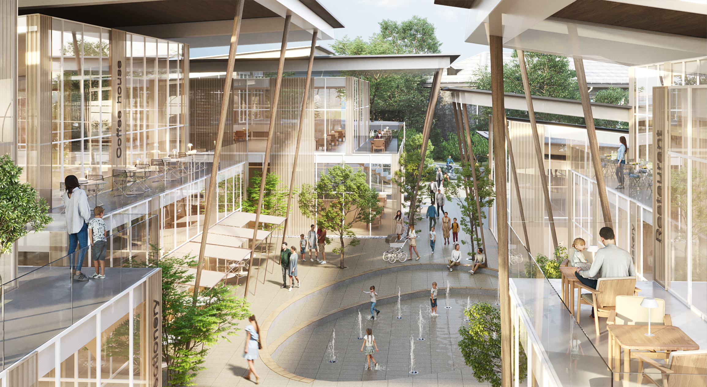 На втором уровне размещены рестораны и магазины с террасами, а также площади для организации открытых и закрытых рынков. Половину открытой зоны рынка на втором уровне возможно преобразовать в закрытое пространство. Места для технического оснащения предусмотрены в каждой постройке под кровлей, что позволяет сохранить архитектурную привлекательность зданий и обеспечить дополнительное пространство.