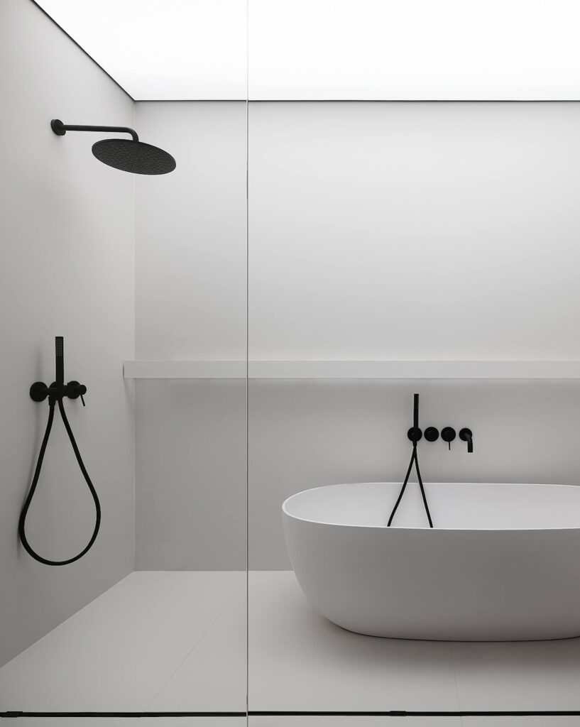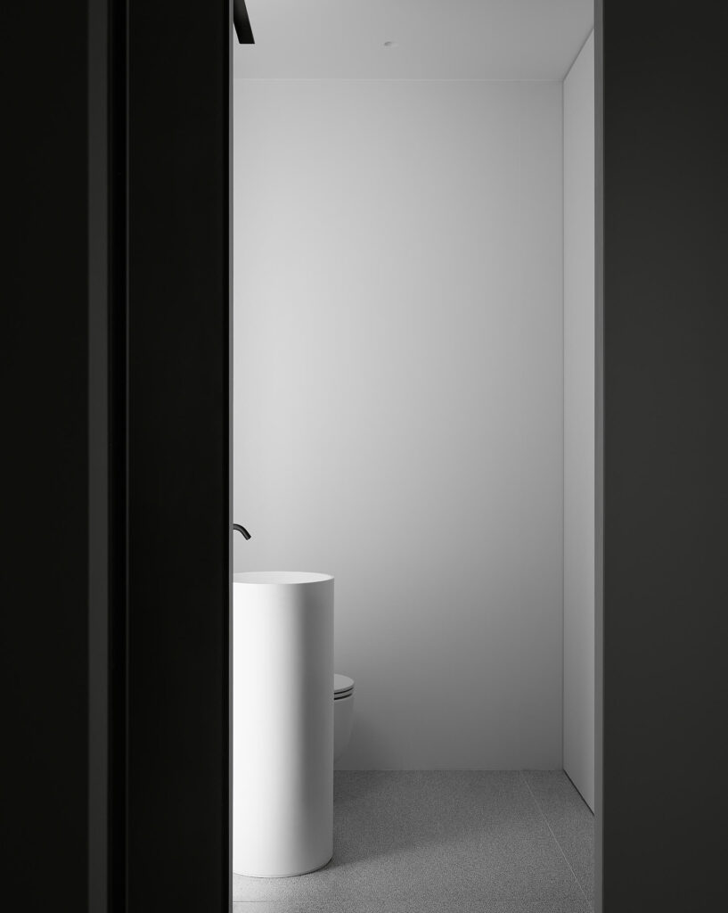 Важную роль в формировании пространства в этом проекте играет свет. Он позволяет полностью изменять эмоциональное ощущение от интерьера и трансформировать его под разные сценарии. Вдохновившись творческим методом американского художника Джеймса Таррелла, архитекторы создали световые инсталляции в каждой комнате. Особенно ярко это ощущается от светового объекта ванной комнаты — полностью белоснежного пространства со светящимся потолком. В других зонах интерьера каждый объем был подчеркнут индивидуальными лайтбоксами, что создало эффект медитативного погружения и одновременно усилило динамику архитектурного пространства.