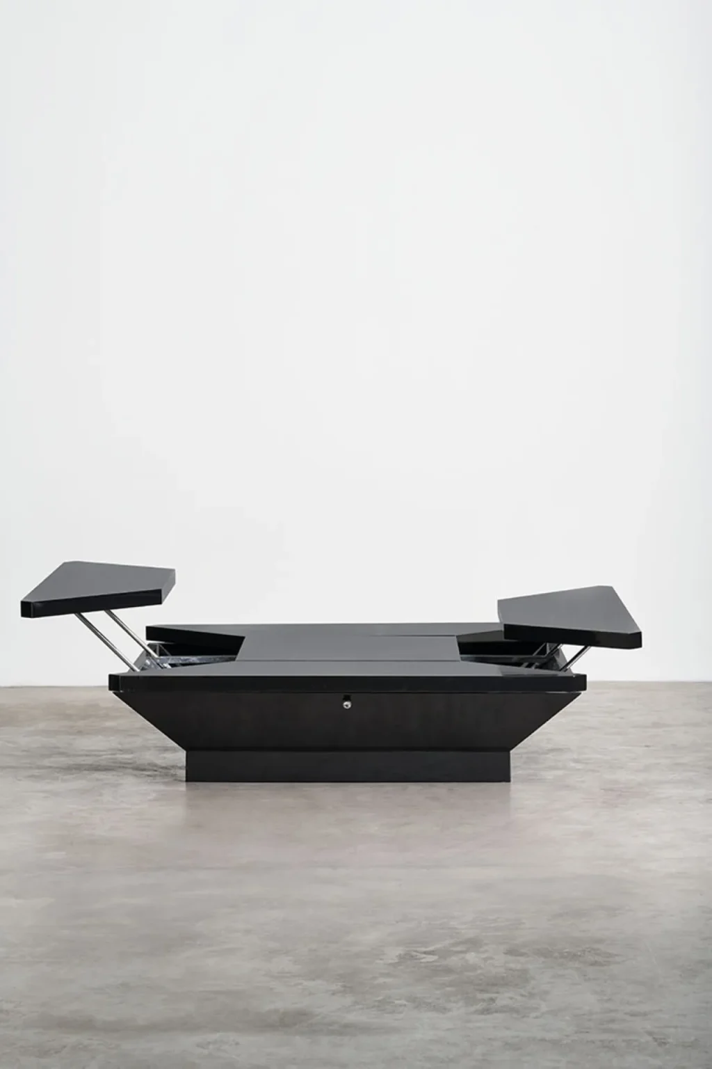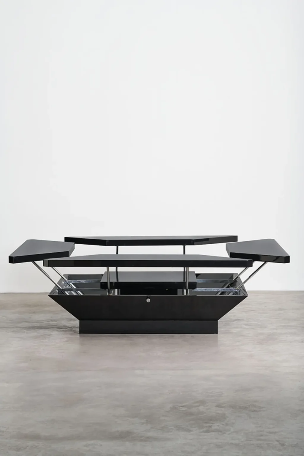 Проект акцентирует внимание на пересечении технологий и традиционного ремесла: низкий стол Фабрицио Кокки с регулируемой конструкцией иллюстрирует современные инженерные решения в контексте минимализма, а металлическая потолочная лампа Джулио Стербини в индустриальной эстетике презентует пример коллекционного дизайна.