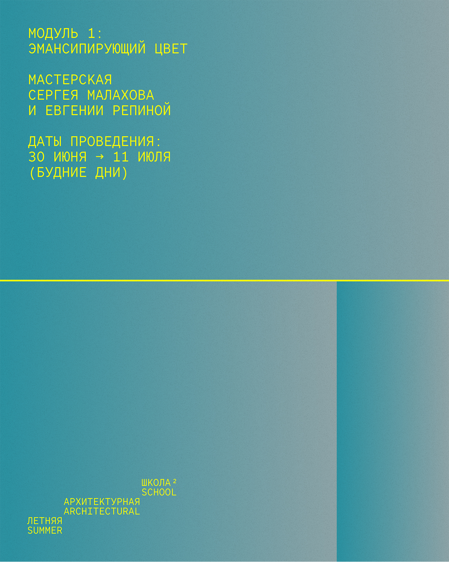 В этом году вместе с кураторами из TLP Education, бюро XOPA, мастерской Сергея Малахова и Евгении Репиной, художником и фотографом Юрием Пальминым участники будут исследовать то, как цвет влияет на восприятие пространства и может ли он стать способом описания собственного видения мира.
