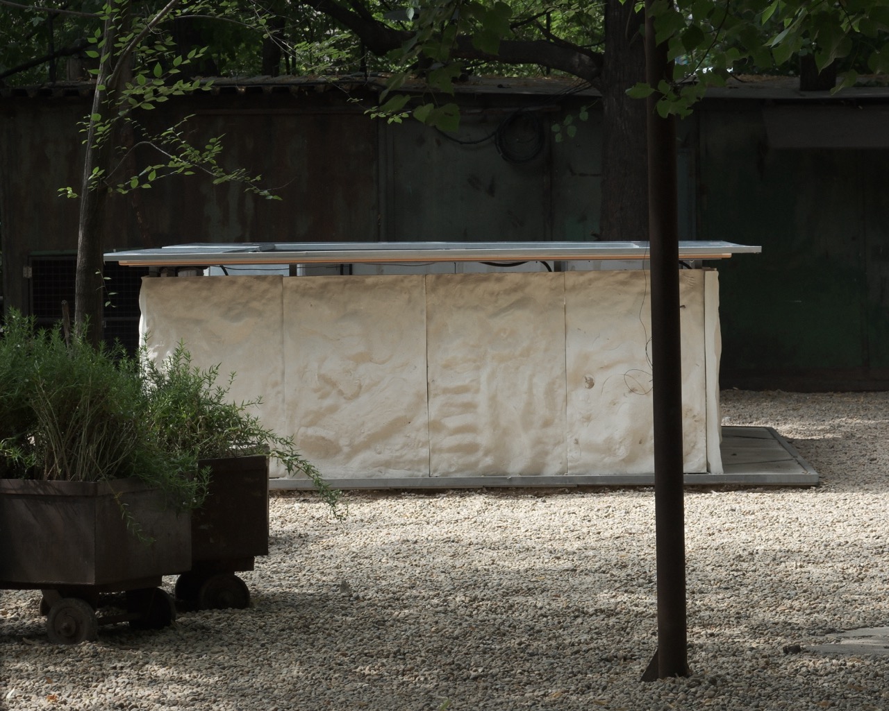 В этом году на месте бывшего клуба Mutabor открылся новый проект — DEX. Это пространство всегда было большой экспериментальной площадкой для музыки и искусства. Поэтому архитектурный подход стал тоже своего рода экспериментом: в постиндустриальном контексте такой промышленный материал, как бетон, мы заливали в песчаную опалубку, давая материалу свой голос — более природный и живой, консистентный саду.