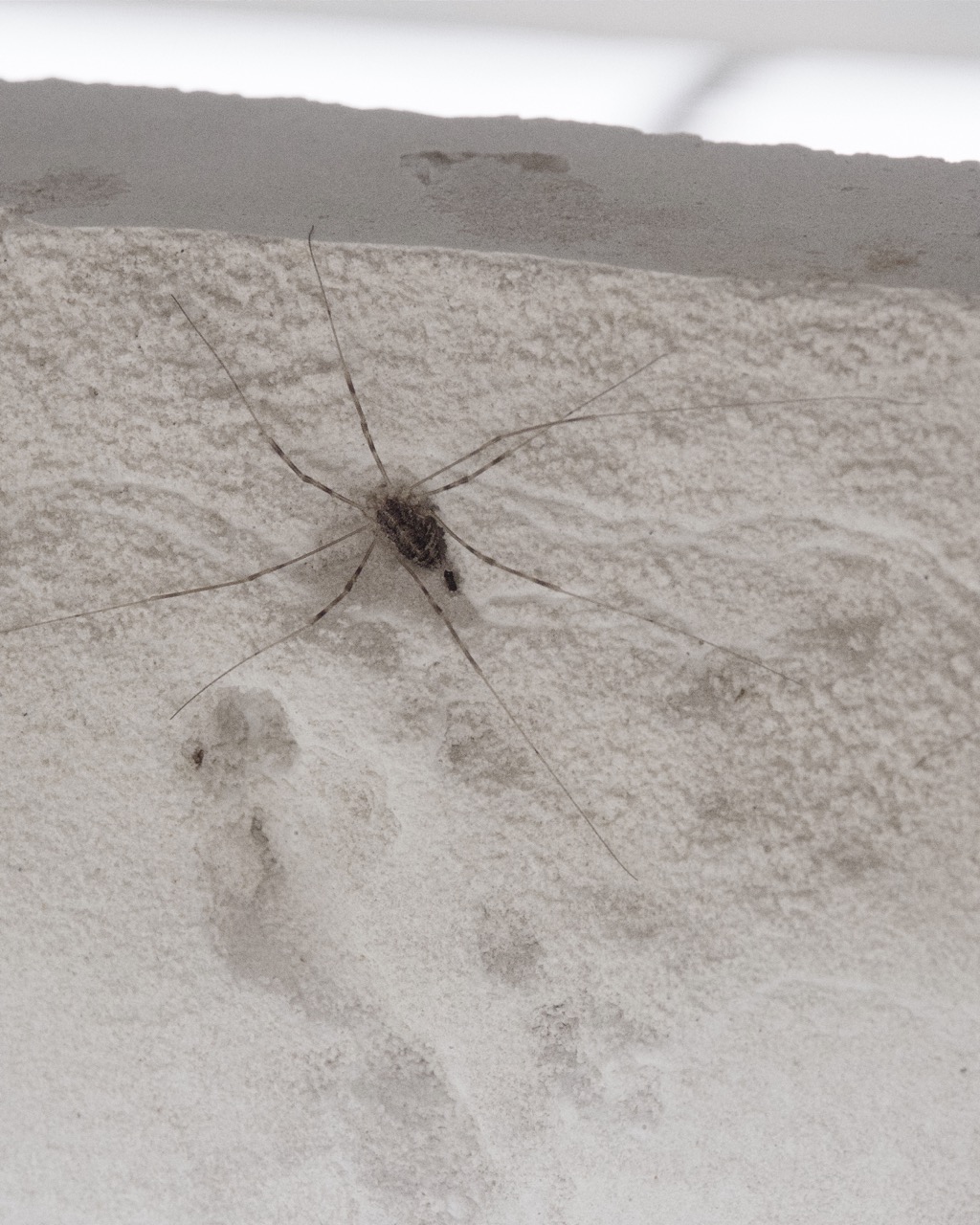 Однажды на подготовленный песок попал сильный дождь, поверхность покрылась ямочками от капель. Для нас это оказалось дефектом, но позже именно эти плиты полюбили пауки: они стали жить в углублениях, и это тоже стало частью ландшафта.