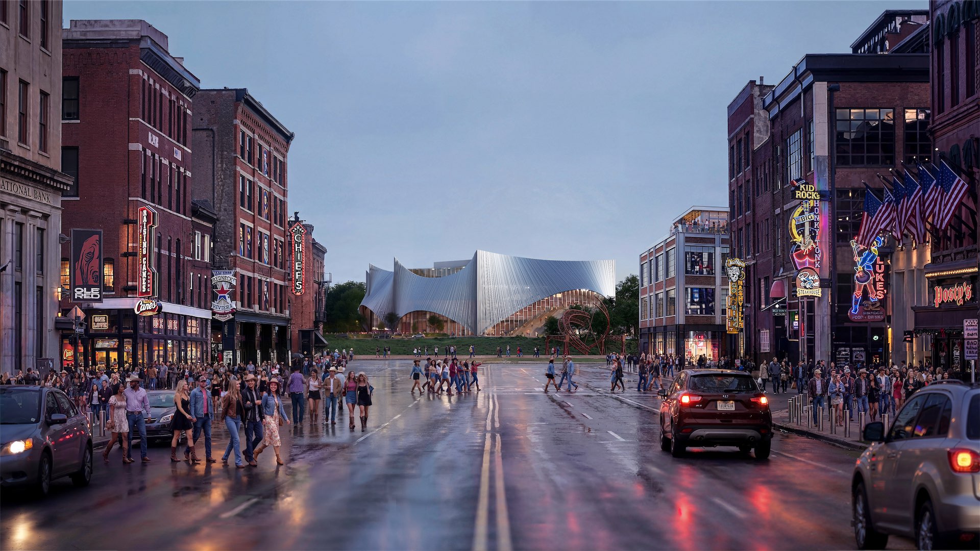 Команда BIG во главе с Бьярке Ингельсом разработала здание площадью около 28 500 м², которое возведут на восточном берегу реки Камберленд, рядом с парком и стадионом «Ниссан». Концепция строится на идее моста — не только через реку, но и между старым и новым Нэшвиллом, между разными видами искусств. Центр должен визуально завершать перспективу Бродвея, главной улицы города, и стать «маяком» для другого берега, притягивающим культурную жизнь к новой набережной.