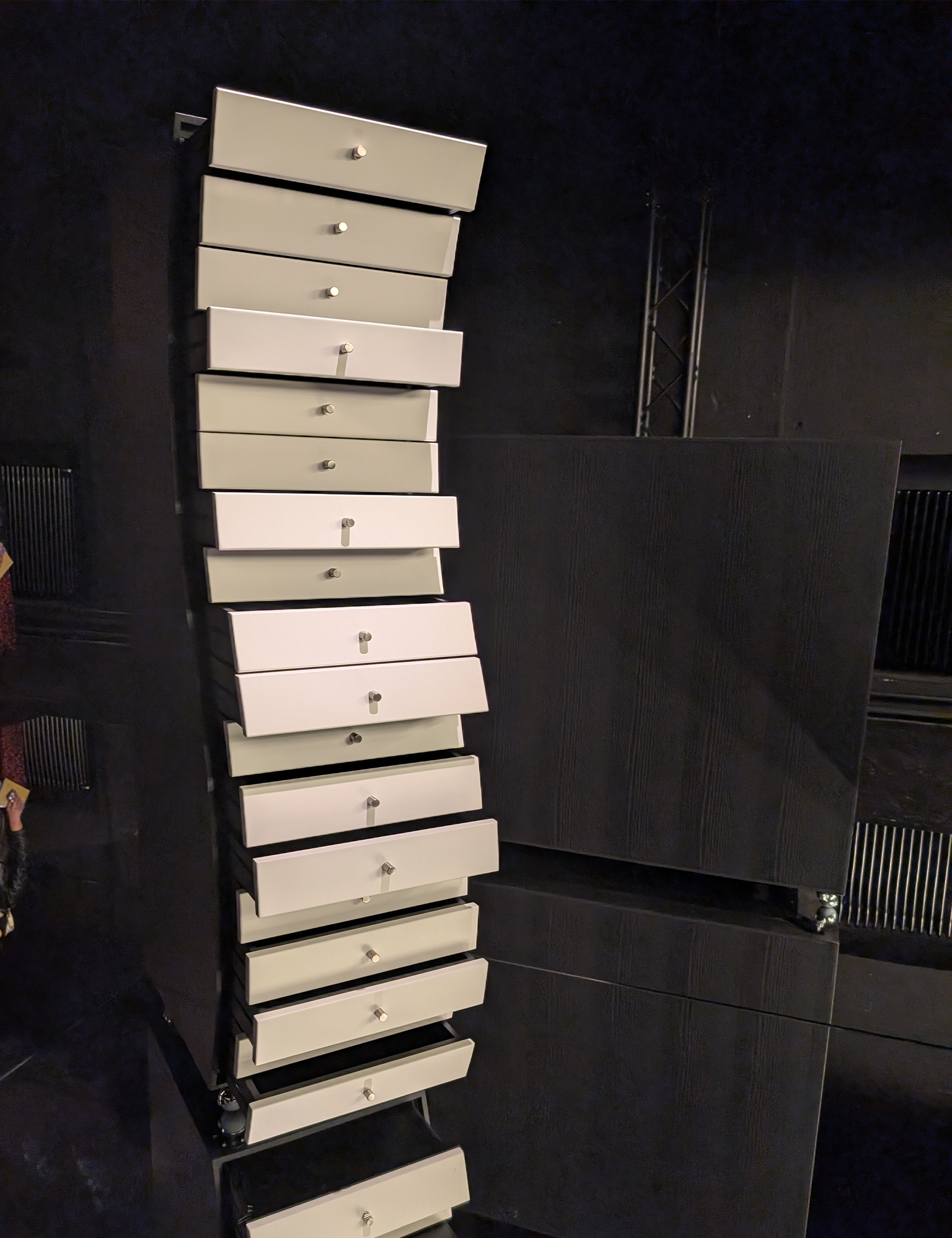 Предметы Supaform заметны сразу – очень узнаваемый, мощный стиль.  Особенно понравилась экспозиция в коричневых тонах в духе позднесоветского театра с лакированными поверхностями, эстетикой, чуть забытой, но очень символичной.