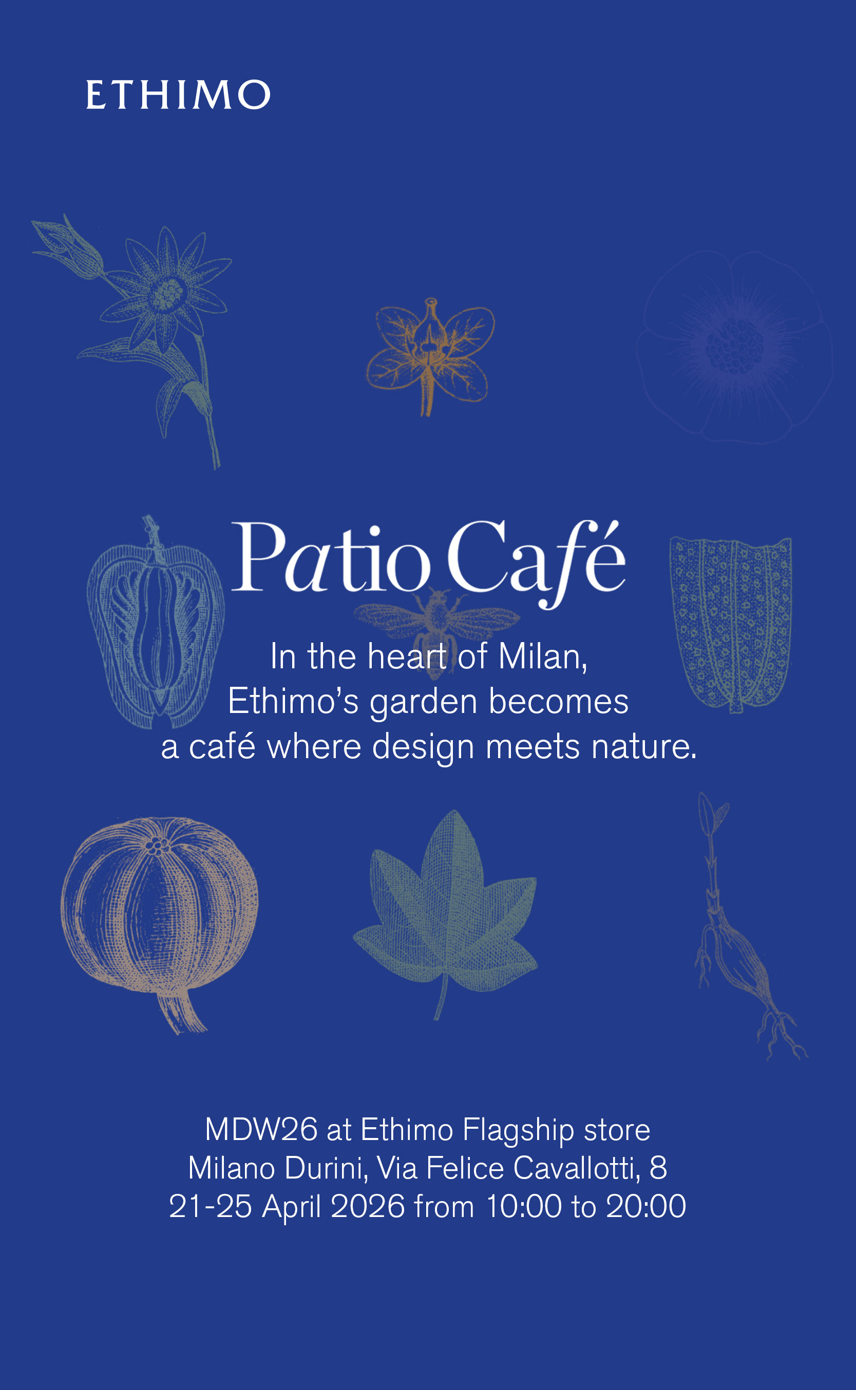 Ethimo предлагает альтернативный формат взаимодействия с брендом, превращая флагманское пространство в городской сад с временным Patio Café. В течение недели шоурум функционирует как открытая, расслабленная среда, где дизайн раскрывается в повседневных сценариях — от утреннего кофе до вечернего бокала вина.