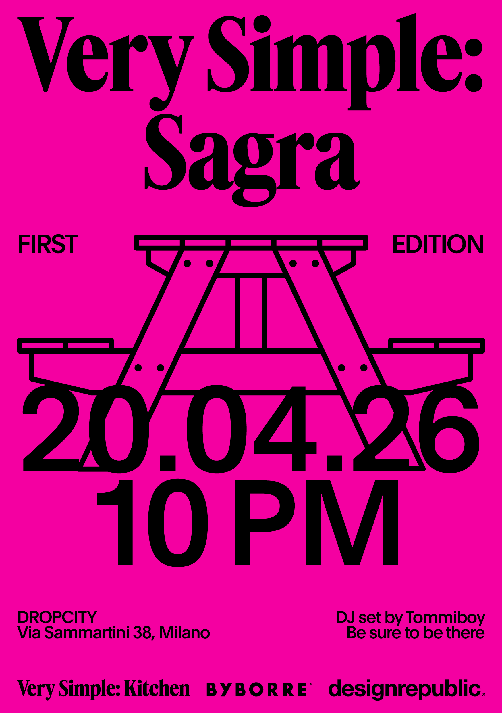 В рамках сотрудничества с Dropcity пространство получает дополнительное измерение: в тоннелях с помощью кухонных модулей Very Simple: Kitchen создается бар как открытая точка притяжения. Проект выстраивается вокруг идеи «сагры» (в переводе с итальянского sagra — фестиваль, посвященный локальным продуктам) — коллективного опыта, в котором еда, материал и пространство соединяются в единую социальную структуру.