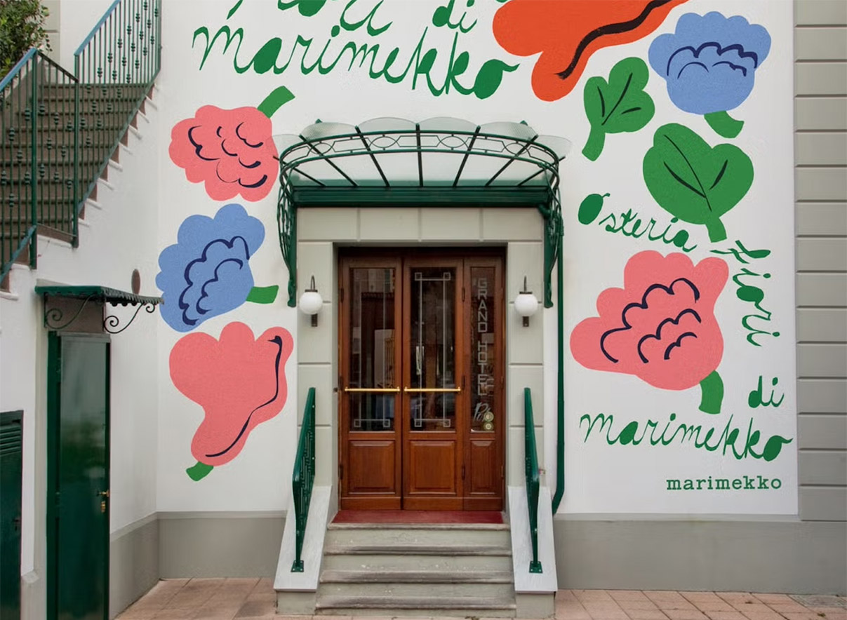 Marimekko представляет Osteria Fiori di Marimekko — проект, в котором текстиль, гастрономия и культура соединяются через тему цветка — главную в визуальной системе финского бренда — как символического мотива. Пространство Hosteria Grand Hotel трансформируется с помощью масштабных текстильных инсталляций с принтом Kukasta Kukkaan Эрьи Хирви. Экспозиция дополняется кураторской подборкой предметов и гастрономической программой с финским акцентом. Проект выстраивается как мультисенсорный опыт, где цвет, форма и вкус работают вместе, создавая цельную и легко считываемую атмосферу.