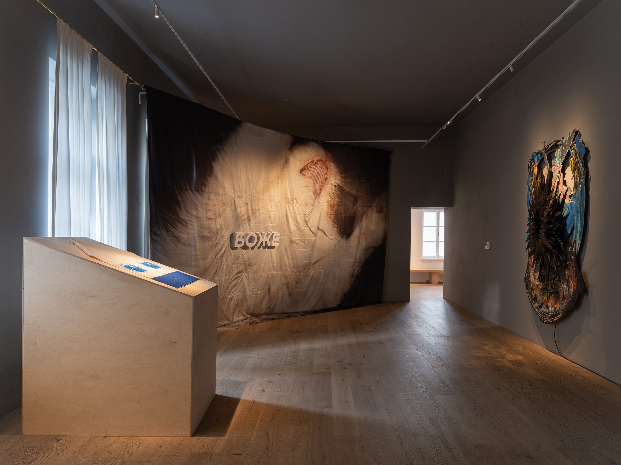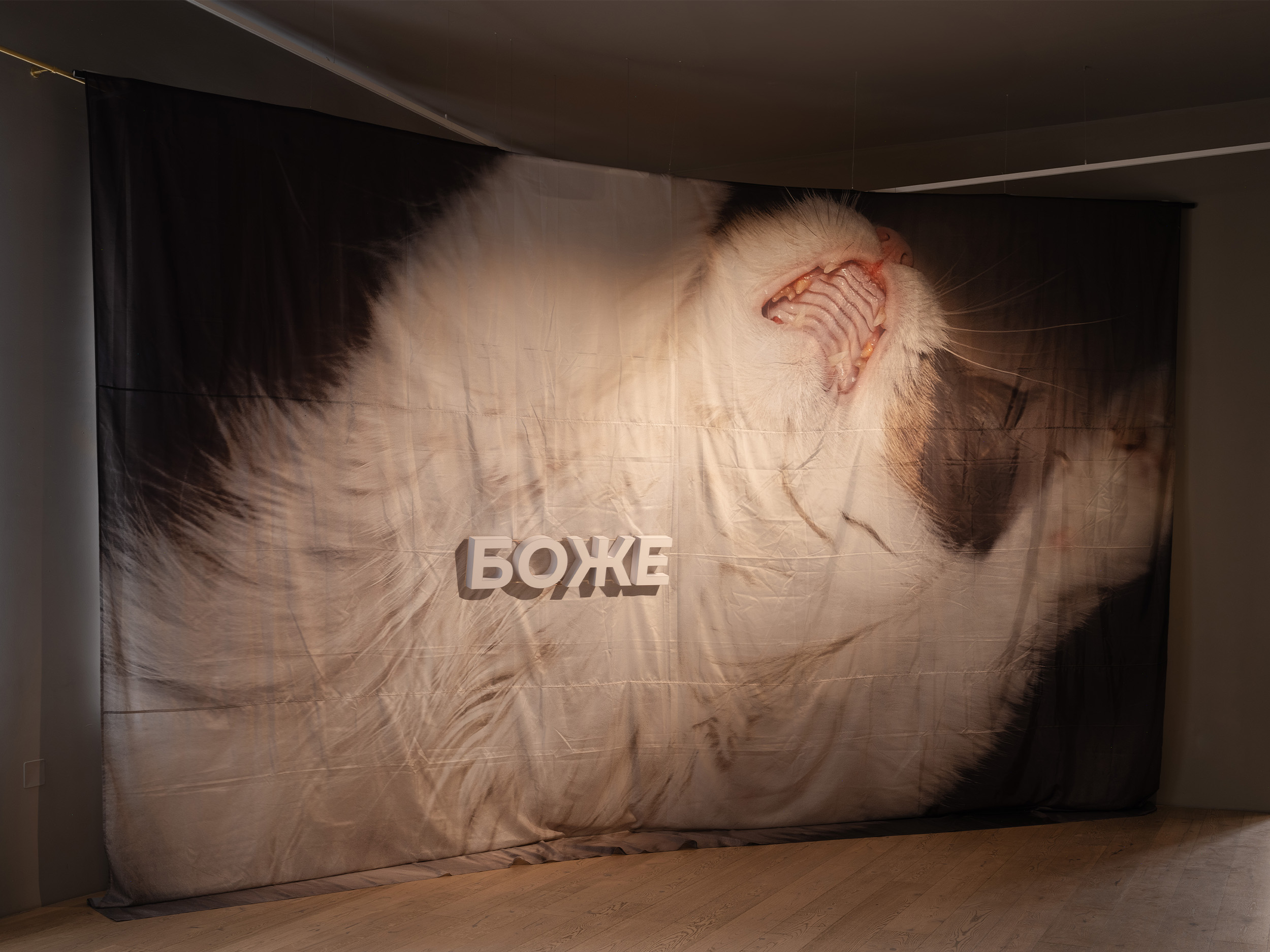 Ирина Корина — художница, сценограф и один из самых изощренных мастеров тотальных инсталляций, собранных из обломков предметной среды и отзвуков коллективной памяти. В данной работе основным рабочим материалом становятся повсеместные дешевые отделочные фактуры, ткани, скатерти и клеенки, пластиковая облицовка, сайдинг, пенопласт и другие фактуры и предметы. Инсталляция пестрит карнавально‑праздничным безумием и подчеркнутой вычурностью различных эстетик, где важную роль играет эффектный аляповатый орнамент и китчевое украшательство.