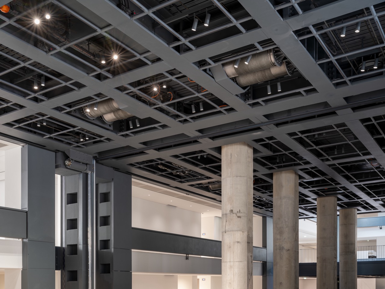 Главный жест Нувеля — пять подвижных платформ, которые могут подниматься, опускаться и менять высоту, создавая до одиннадцати разных конфигураций. Эти гигантские стальные «пластины» — сердце здания, позволяющее художникам и кураторам строить выставки как живые сценарии.