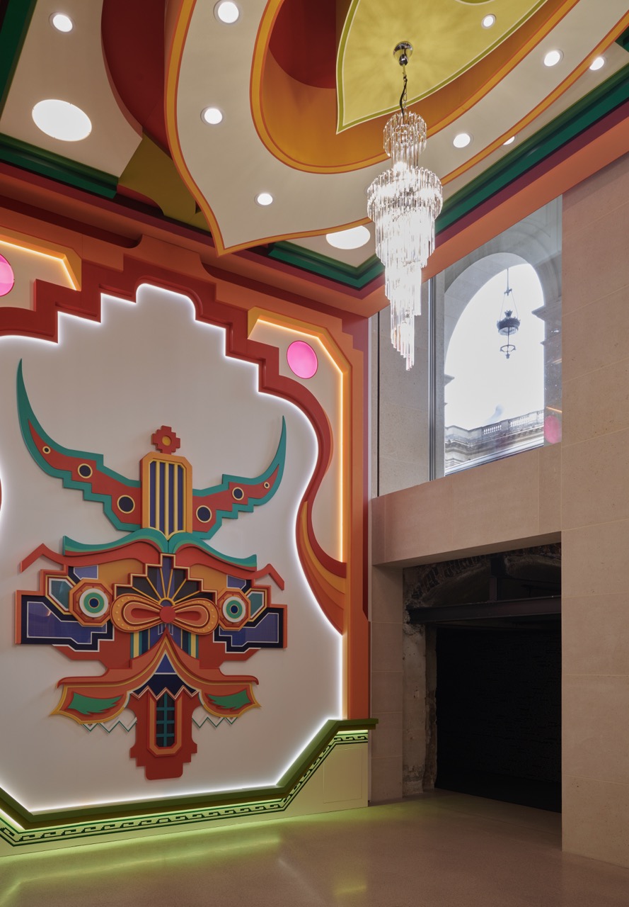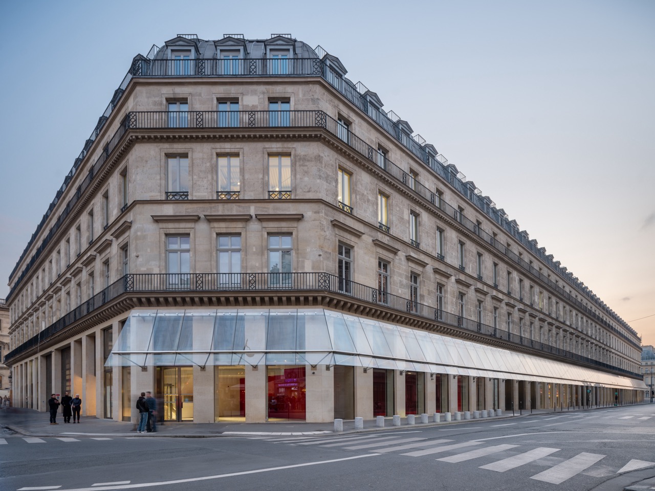 За строгим историческим фасадом скрывается пространство, открытое городу: большие окна вдоль Rue de Rivoli стирают грань между внутренним и внешним пространством, а стеклянная крыша пропускает дневной свет, превращая его в часть экспозиции. Здесь Париж не остается снаружи — он буквально становится частью выставочного опыта.