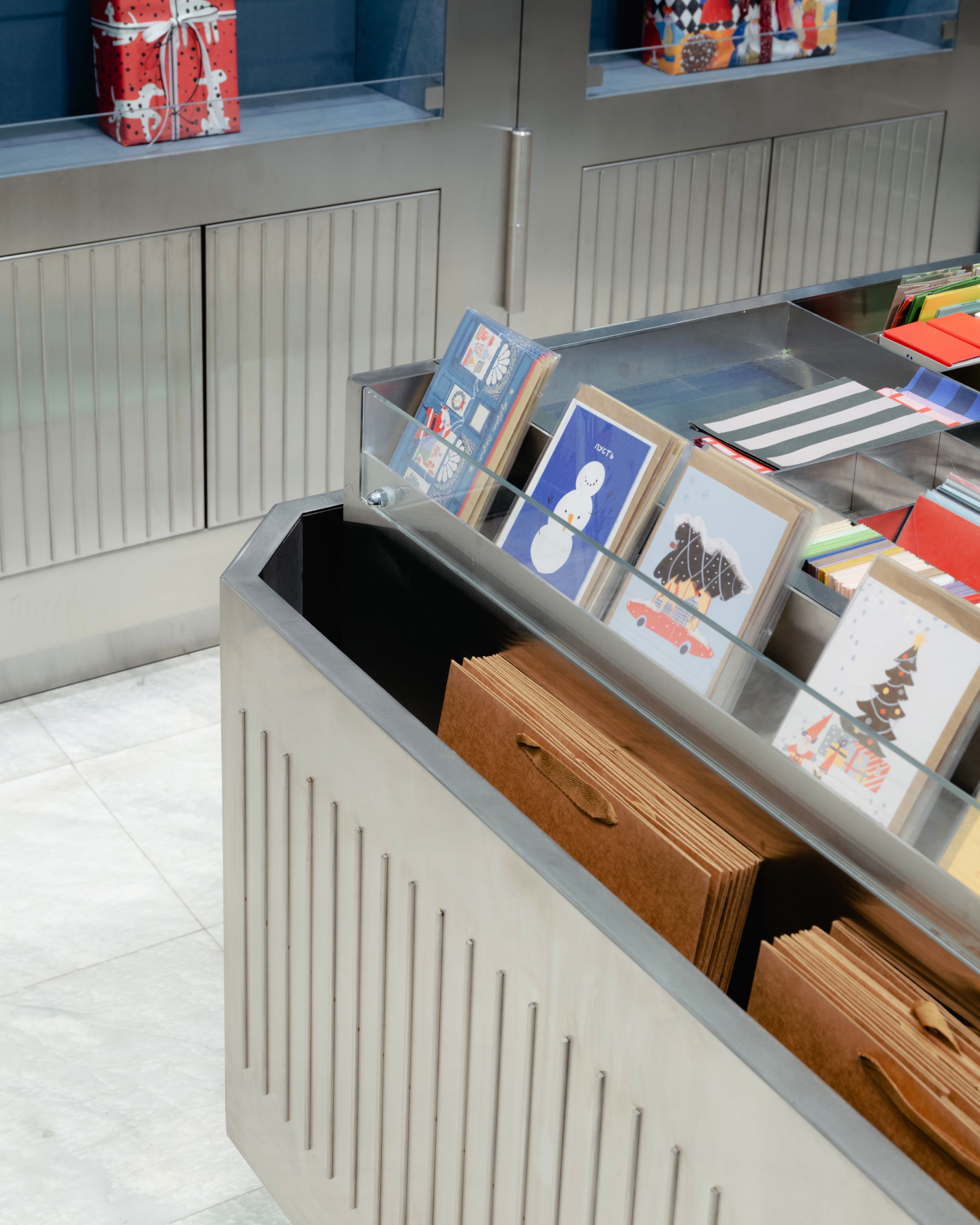 Новый корнер O Paper Paper — это разложенная шкатулка-органайзер. Дизайн — продуманная система ячеек, где каждая упаковка, открытка или наклейка находится на своем месте.