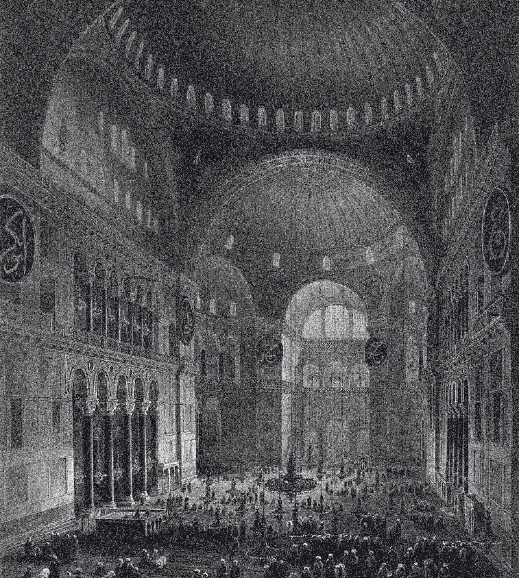 Собор Святой Софии в Стамбуле вбирает в себя гигантскую площадь — в обстановке ощущается мощь тысячелетий, она передает опыт нематериального переживания.