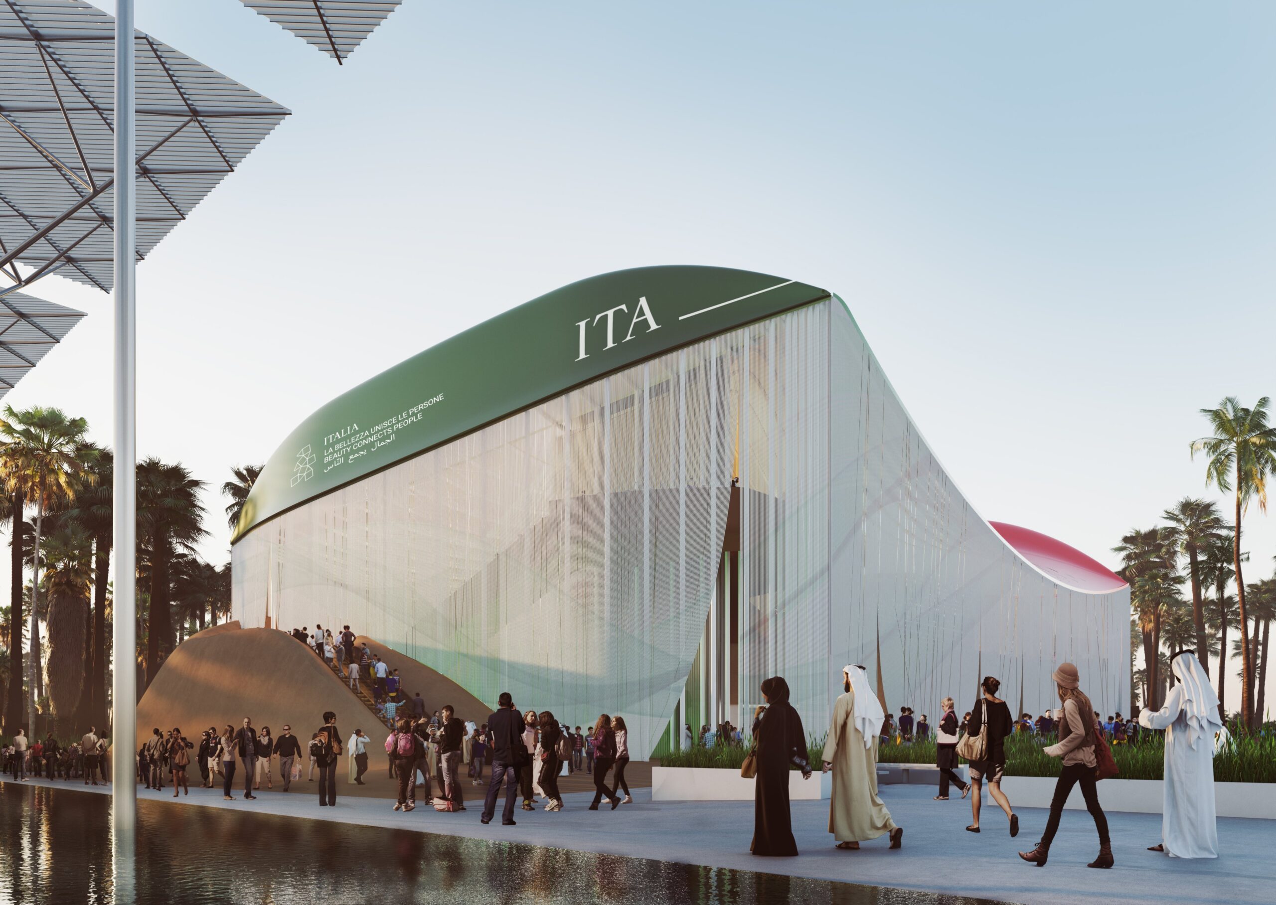Концепция павильона сосредоточена на адаптации архитектуры к экстремальным климатическим условиям, характерным для региона Персидского залива. Проект предлагает решать проблемы экстремально высоких температур, используя такие технологии пассивного охлаждения, как геотермальные источники и солнечные дымоходы, соединенные в единую систему обмена воздухом. Модульная конструкция павильона сочетает мобильность и устойчивость: пол, потолок и колонна могут быть адаптированы под различные городские условия.
