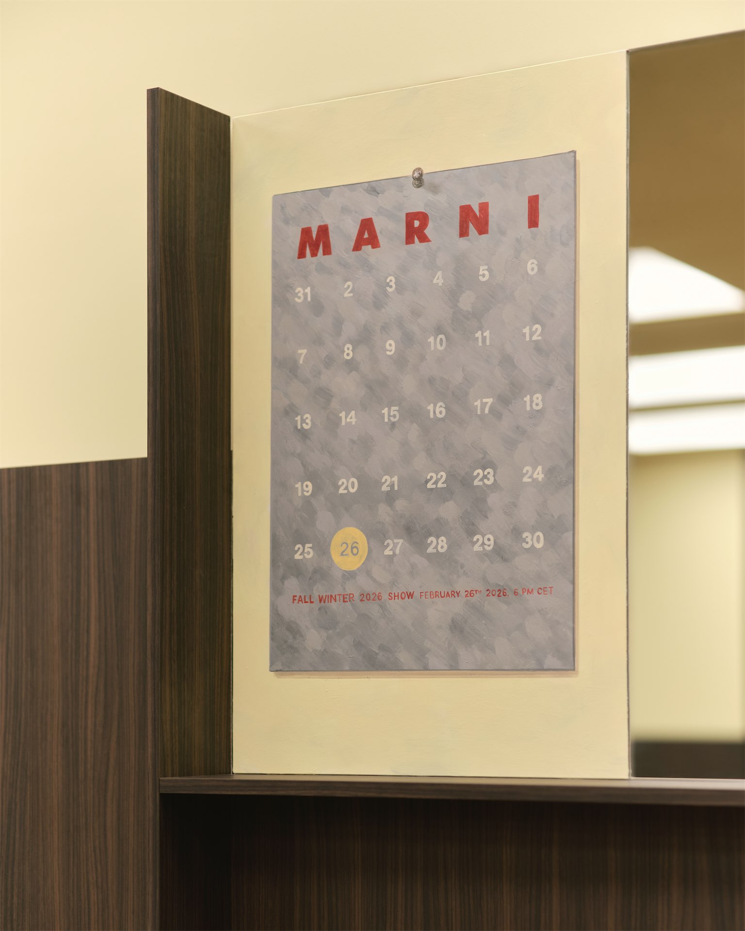 Показ проходил непосредственно в штаб-квартире Marni, что усилило ощущение реального рабочего пространства. Тема офисной жизни была встроена и в детали коммуникации: приглашение было выполнено в виде post-it — самого узнаваемого предмета офисной канцелярии.