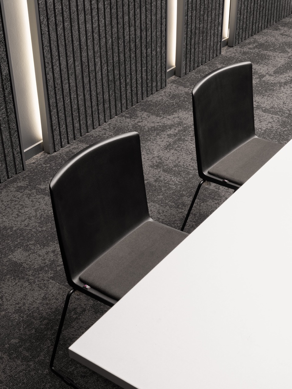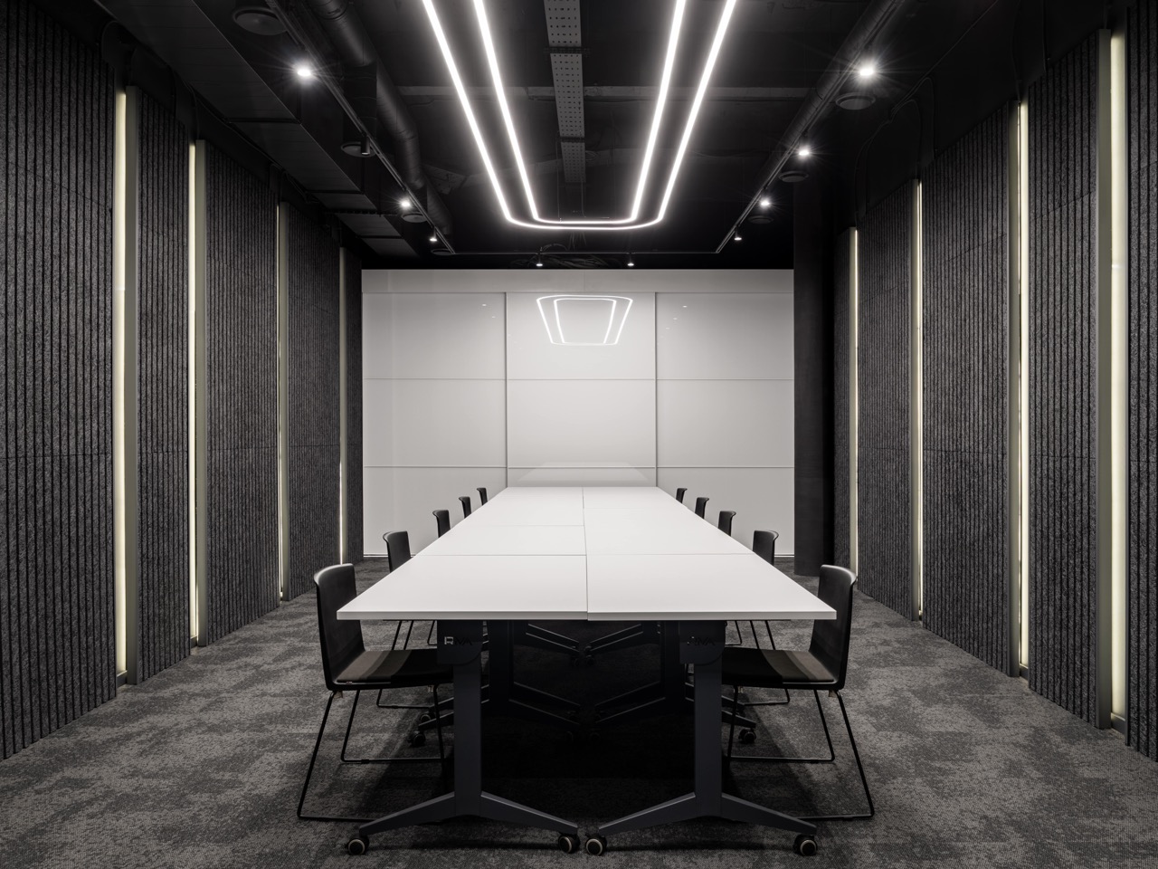 Главная зона — просторный open space, задуманный как живое, гибкое пространство, способное меняться вместе с компанией. Антресольный этаж с кабинетом руководителя и приемной зоной отсылает к архитектуре производственных цехов начала XX века, создавая интересную визуальную связь между управлением и рабочими процессами. Дополнительные помещения — малая переговорная и конференц-зал — продуманы с точки зрения акустики и трансформации. Зал оборудован звукопоглощающими панелями и системой вентиляции, что позволяет адаптировать пространство под разные сценарии: от камерных встреч до масштабных презентаций.