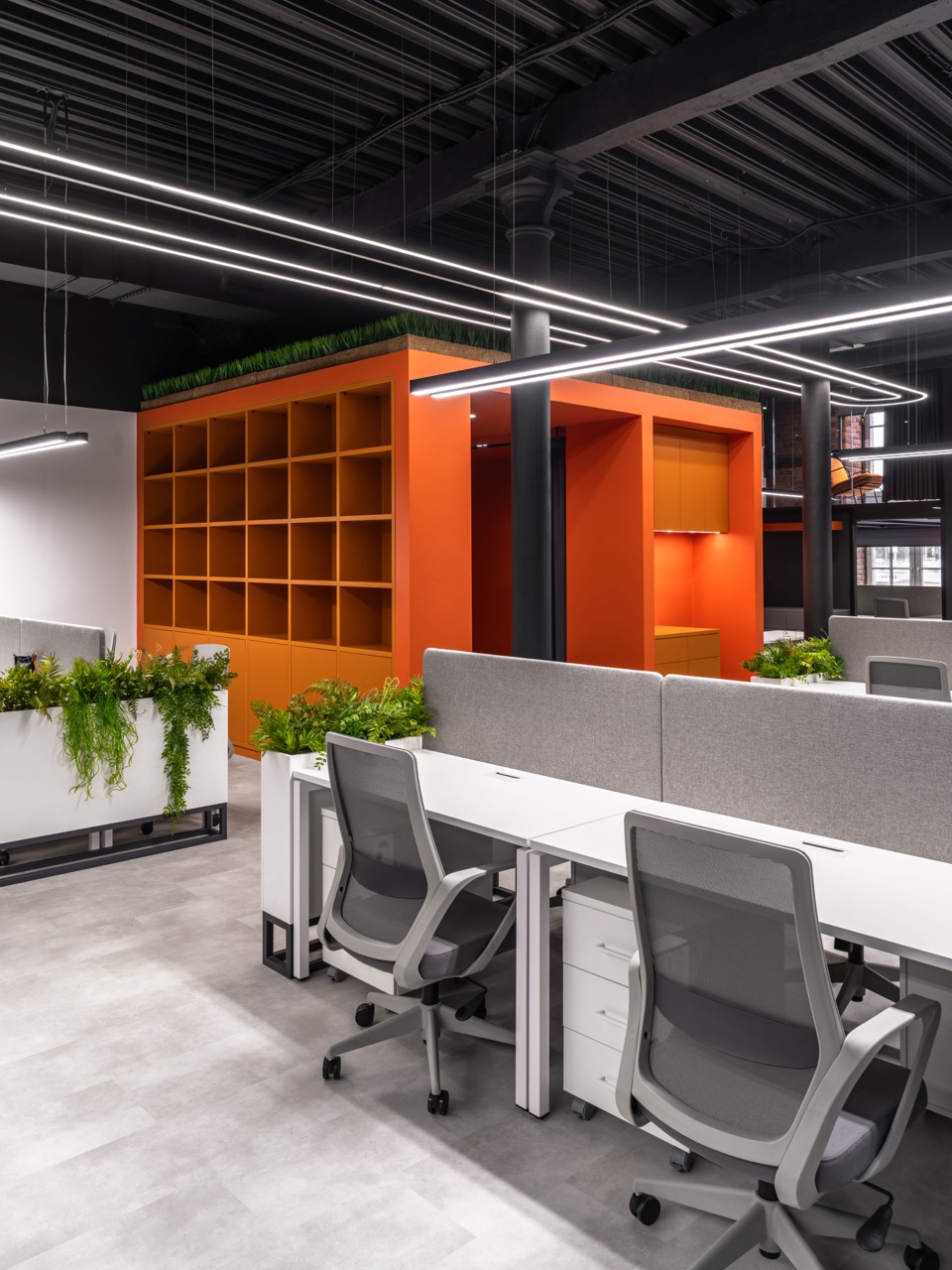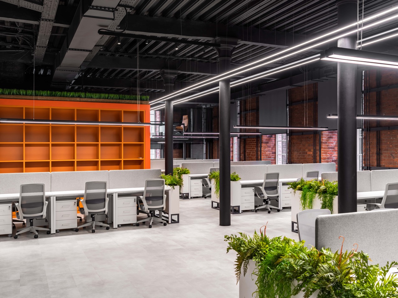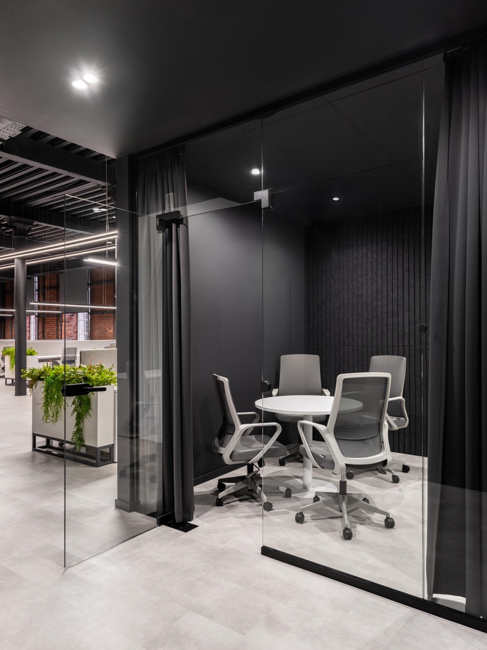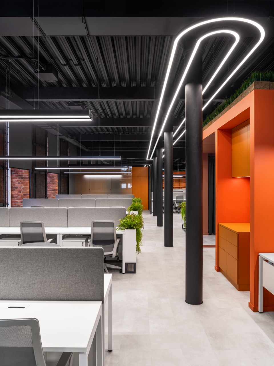 В основе концепции лежит идея сохранения «промышленного кода» пространства и создания комфортной и вдохновляющей среды для современной команды. Стиль «лофт» здесь — не просто декоративный прием, а осознанное продолжение архитектурной логики самого здания: открытые коммуникации, металлические конструкции, кирпичные поверхности и большие оконные проемы стали фоном для новой деловой атмосферы.