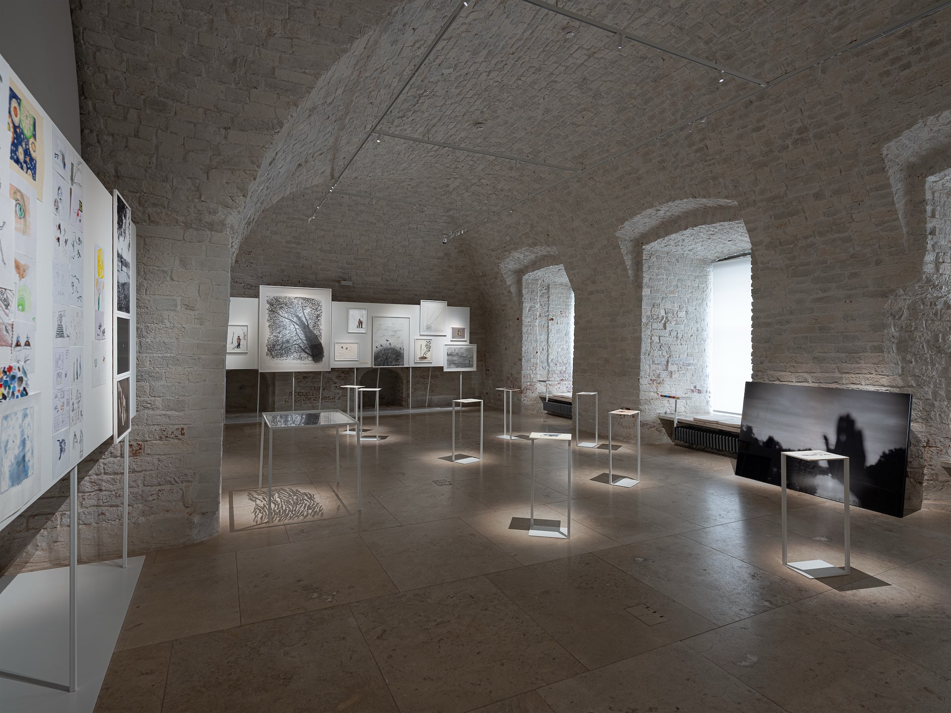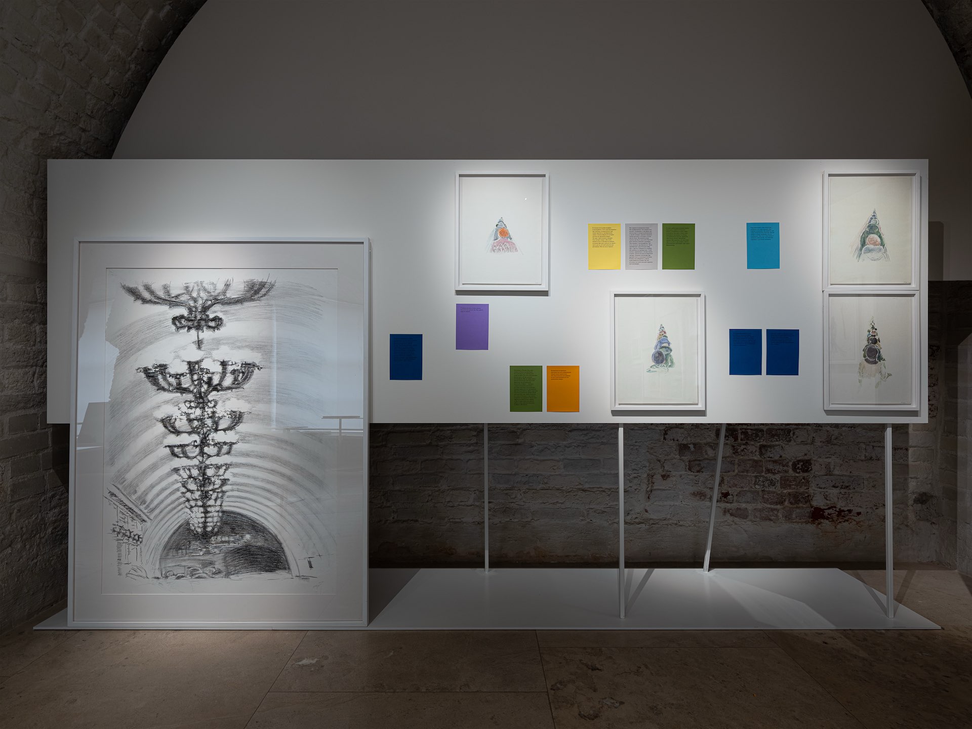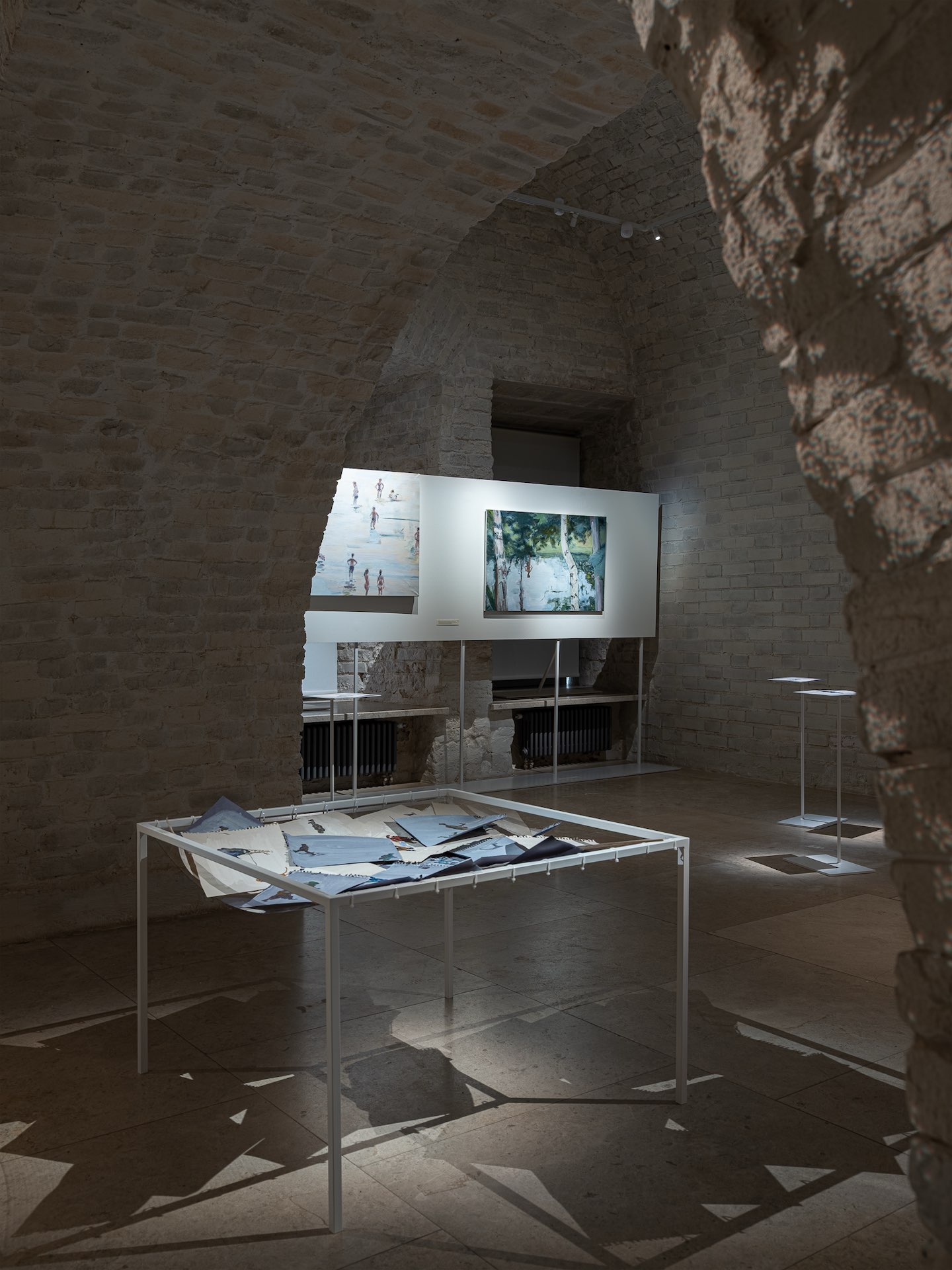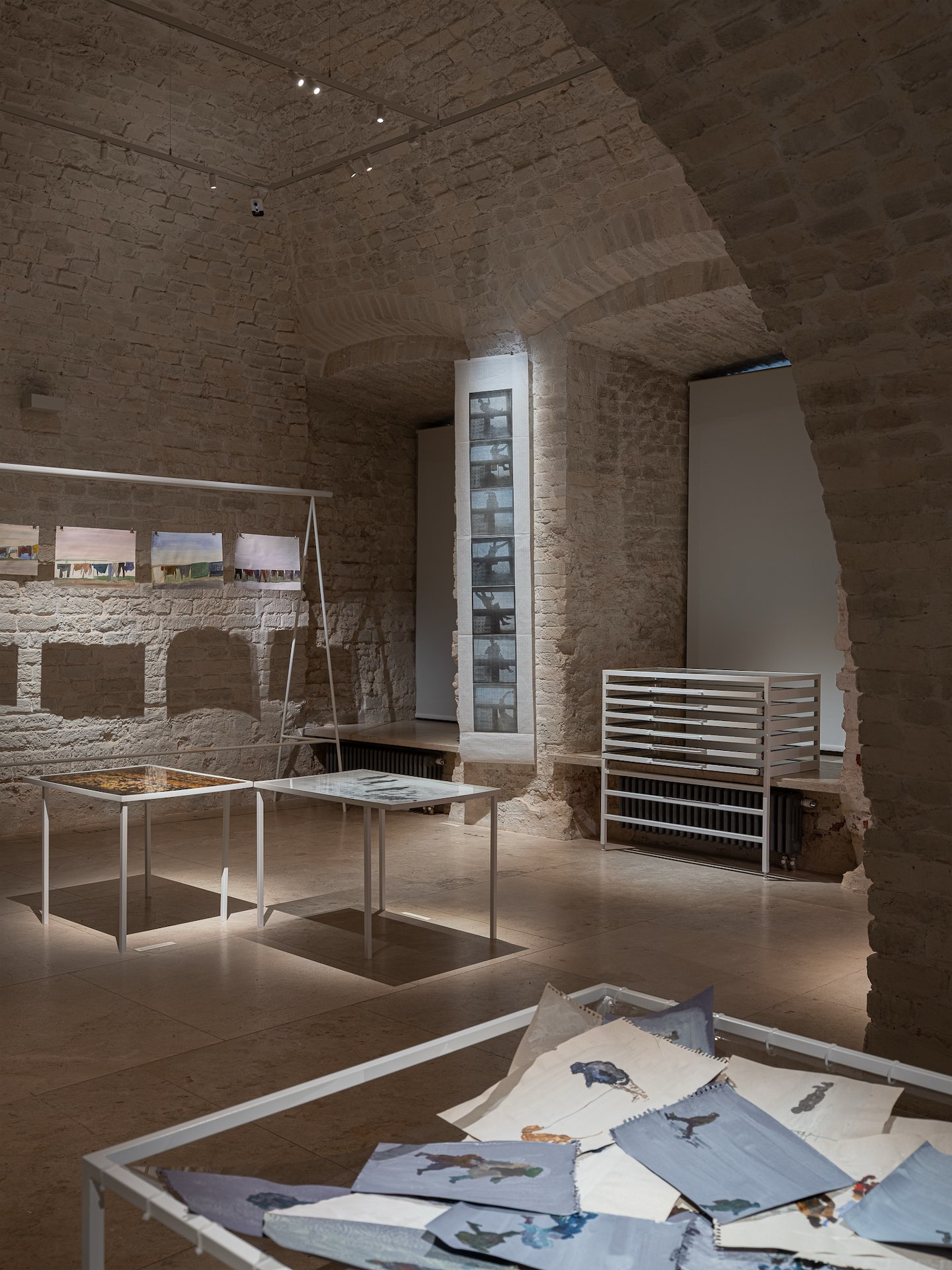 В наших с Ольгой проектах, мне кажется, уместнее было бы называть то, что я делаю, не архитектурой, а сценографией. Несмотря на то, что появляются физические элементы дизайна, это всегда тесный диалог с сюжетами самих работ, их интерпретация и усиление. Такой подход позволяет взаимодействовать со зрителем наиболее честно, транслировать оптику автора. Важно еще и то, что любая выставка — это постоянное изобретение визуального языка. Здесь практически отсутствуют типовые решения, каждая витрина или стол придуманы для конкретного проекта или рисунка, дизайн неразрывно связан со смыслом работ.