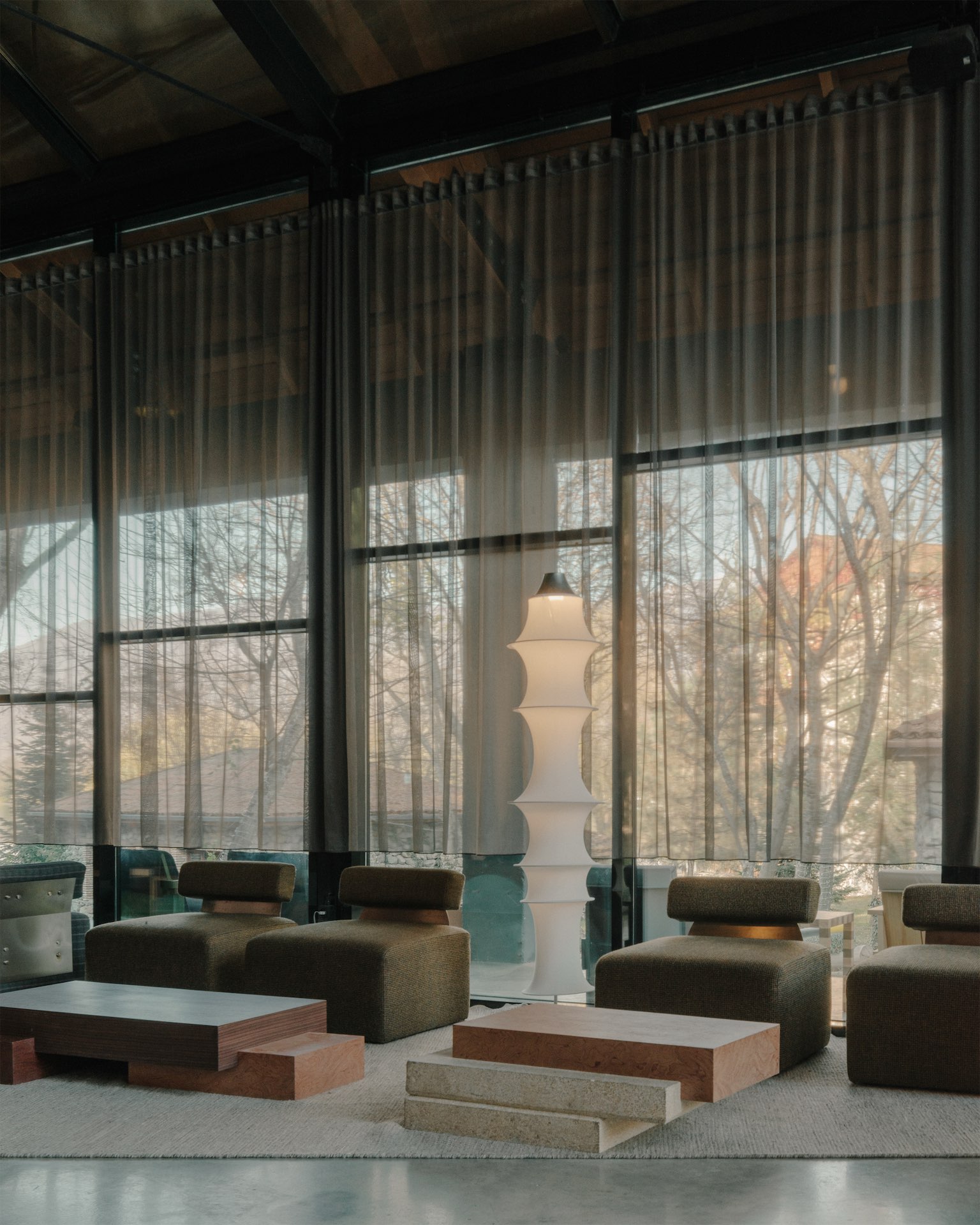 Оба пространства формируют продуманную последовательность — от открытого, наполненного светом ресепшен к более сосредоточенному и тактильному интерьеру магазина. Здесь формируется среда, в которой дизайн, ландшафт и локальная идентичность работают как единая система — без лишней демонстративности, но с вниманием к деталям.