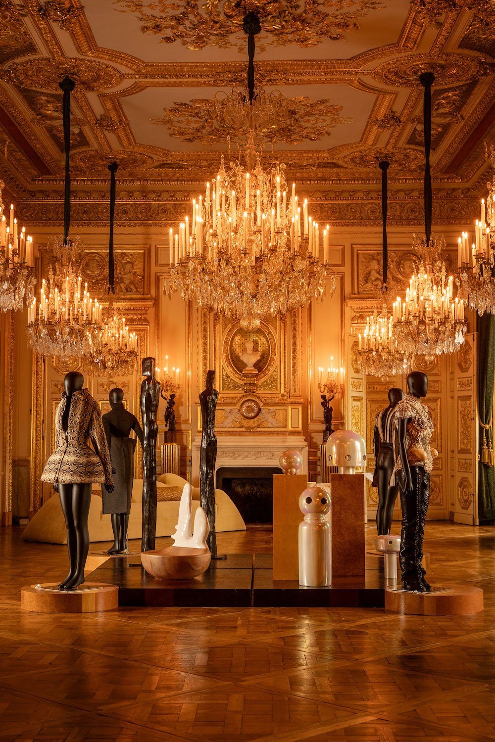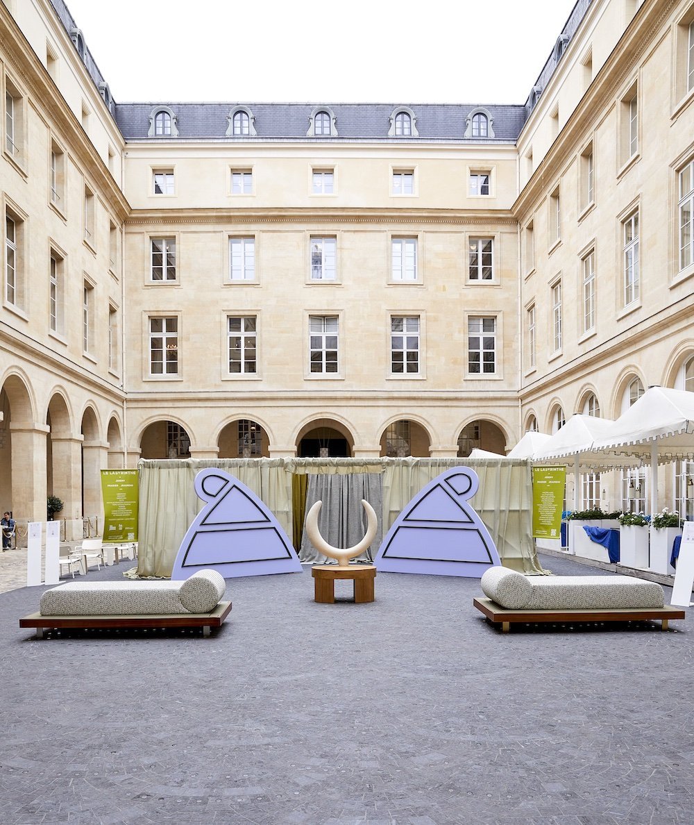 2. С 3 по 21 сентября в Hôtel de la Marine прошла масштабная инсталляция Le Labyrinthe куратора Жереми Прадье-Жоно. Пространство бывшего королевского хранилища мебели превратилось в иммерсивный маршрут, где современный дизайн, декоративное искусство и историческая архитектура вступили в визуальный диалог. Лабиринт, разделенный на три смысловые зоны, предлагал не только последовательное восприятие, но и игровое взаимодействие с пространством. Работа с наследием здесь обретает актуальность — не как цитата, а как архитектура памяти.