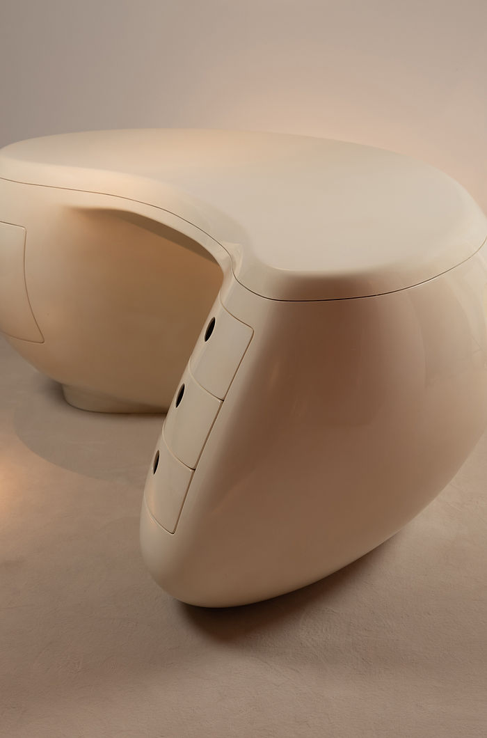 5. Галерея Aurélien Serre представила подборку мебели 1960–70-х годов, включая культовый стол Boomerang Мауриса Калки (1969). Экспозиция воссоздает дух эпохи технологического оптимизма — времени, когда дизайн активно осваивал новые материалы, формы и эстетические сценарии. Хромированные поверхности, динамичные линии и эксперименты с пластиком подчеркивают веру поколения в счастливое светлое будущее.