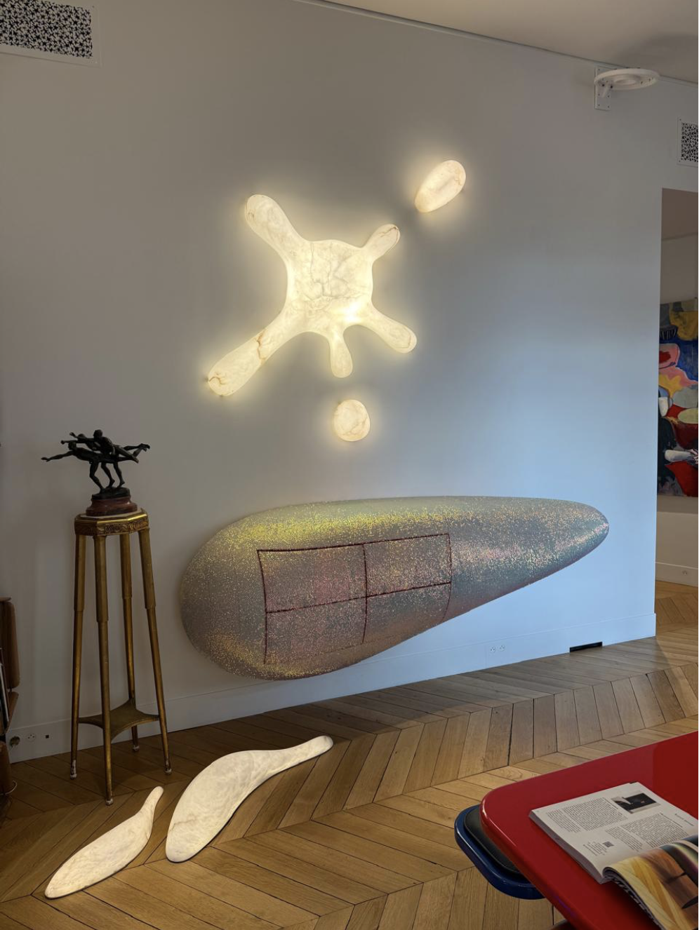 6. Инженер и дизайнер Франк Генсер представил в своей парижской квартире Atelier Franck Genser новую серию предметов — коллекцию Scarf Seating и светильники Cascade. Лимитированные объекты сочетают мотивы ар-нуво и ар-деко, интерпретированные через архитектурную точность форм и сложную материальность: бронзу, мрамор, дерево. Скульптурная выразительность здесь соединена с инженерной рациональностью, что делает мебель не только утилитарным объектом, но и коллекционной ценностью.