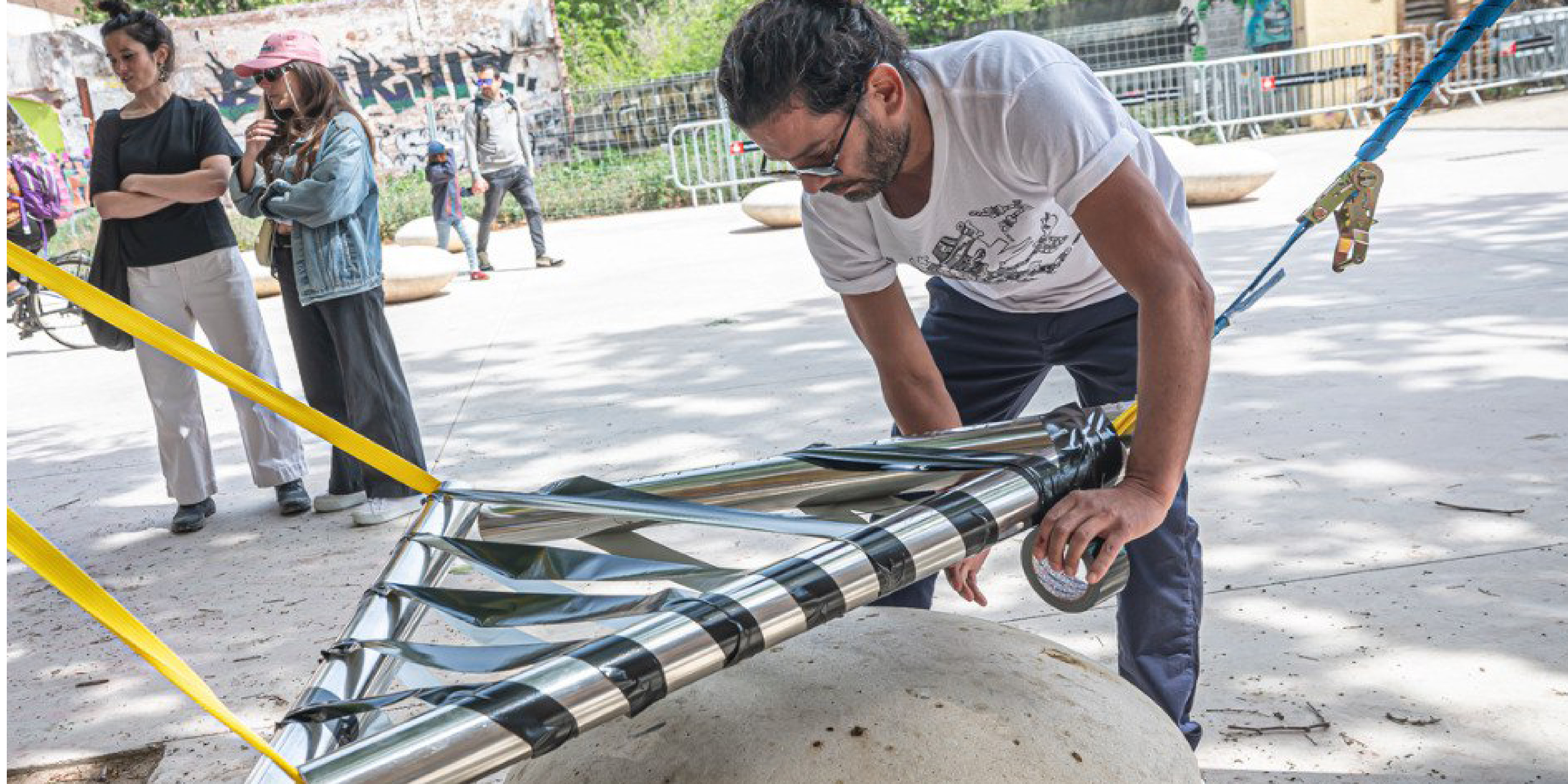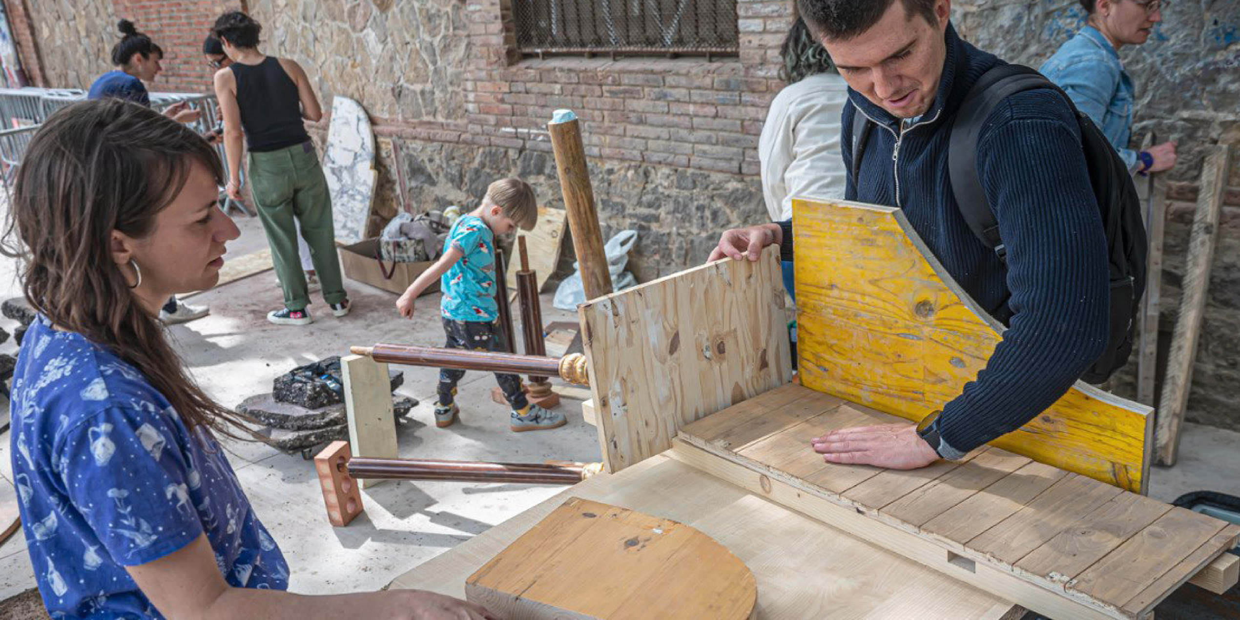Все эти утилитарные материалы, собранные вместе, создают новый временный архитектурный объект, который может функционировать как общественное пространство, мастерская для воркшопов, информационный центр, место для дискуссий и встреч.