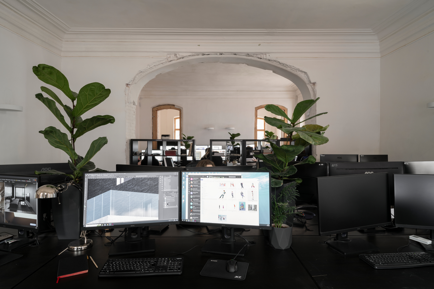 Перед командой стояла задача создать современный комфортный офис для 200 человек и одновременно сохранить наследие прошлого. В советское время пространство было «нарезано» на маленькие комнаты, которые отдали для жилья служащим, а часть помещений заняла администрация завода. После перепланировки бюро выбрало формат open space для работы команды. В честь архитектора здания, Максима Геппенера, и главного инженера Московского водопровода, Владимира Ольденборгера, были названы две переговорные: большая – «Геппенер», из которой есть выход на балкон-террасу, и средняя – «Ольденборгер». Исторический облик вернули арке между помещениями, где работают архитекторы: раньше она была засыпана мусором и заставлена шкафами.