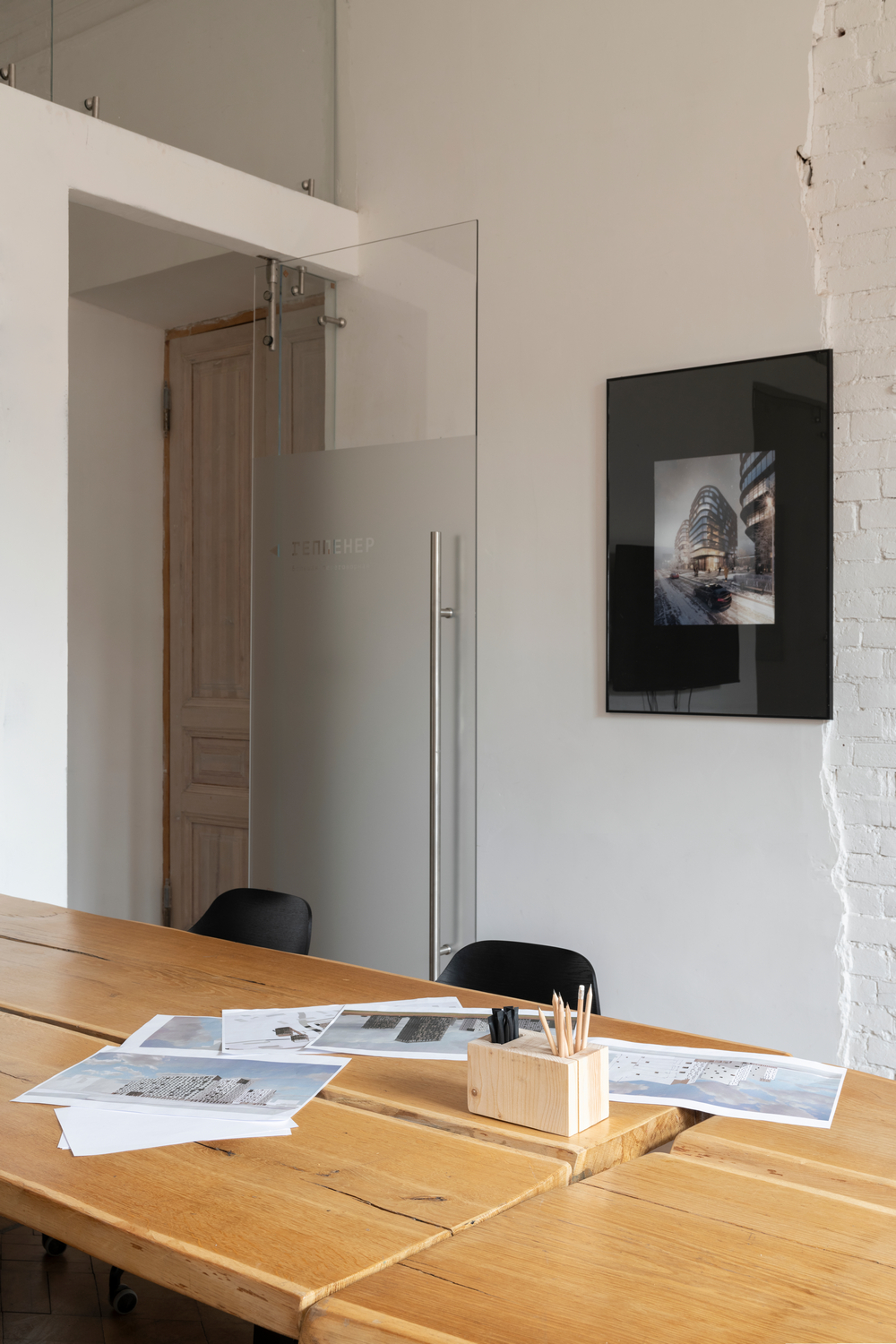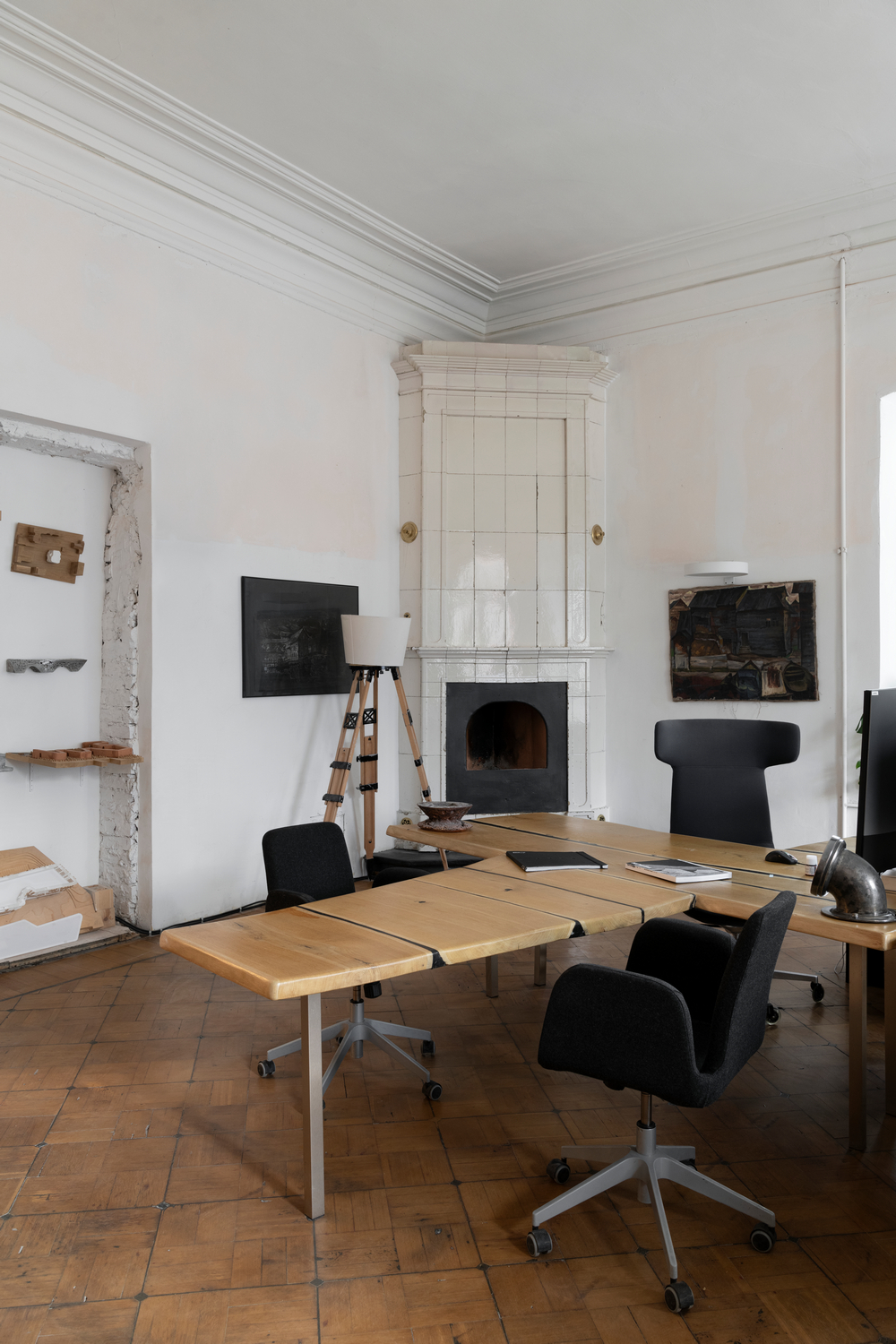 В офисе множество рукотворных деталей, созданных сооснователем бюро и командой архитекторов. Например, керамические буквы – логотип KPLN – Сергей Никешкин сделал из глины и обжег в печи, выложенной им из шамотного термостойкого кирпича. Архитектурные макеты из дерева, металла, воска и глины рассказывают уже свои истории творчества, образов и форм.