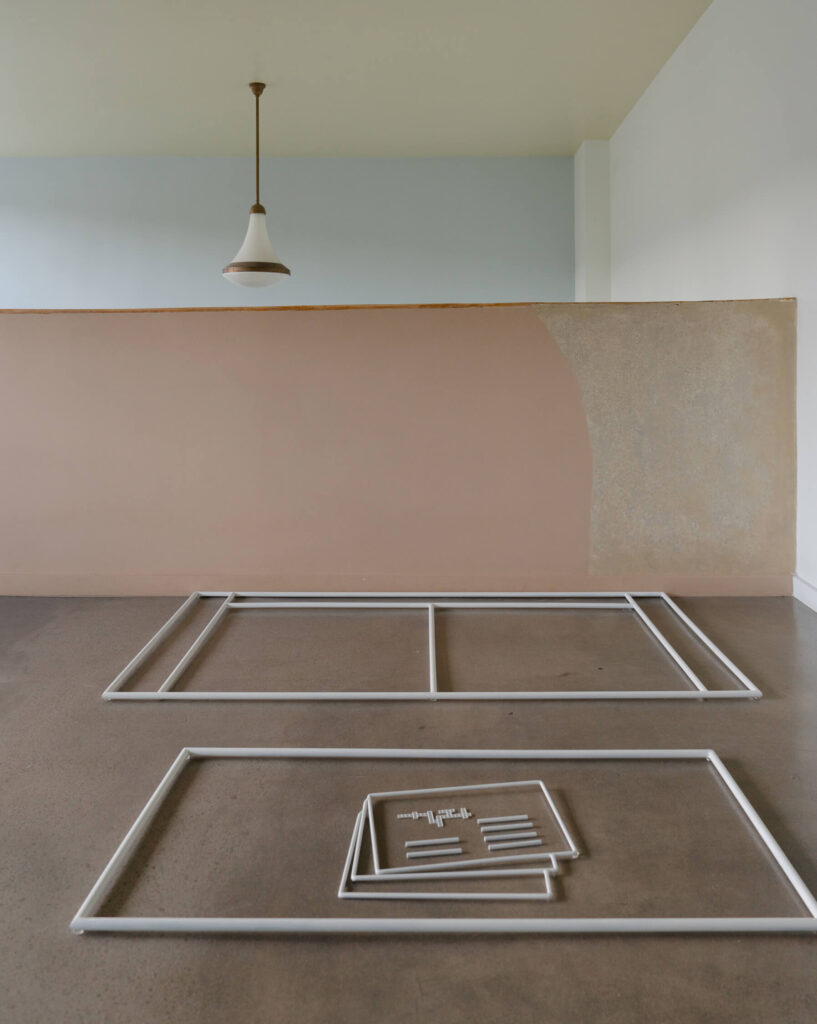 «Несущие конструкцию» — серия художественных проектов в Доме Наркомфина, объединяющая его столетнюю историю и современных российских авторов. В завершающем эту серию проекте «План П» художница Ася Заславская обращается к теоретическим и практическим поискам Моисея Гинзбурга и интерпретирует их в минималистичной архитектурной композиции на полу ячейки П.