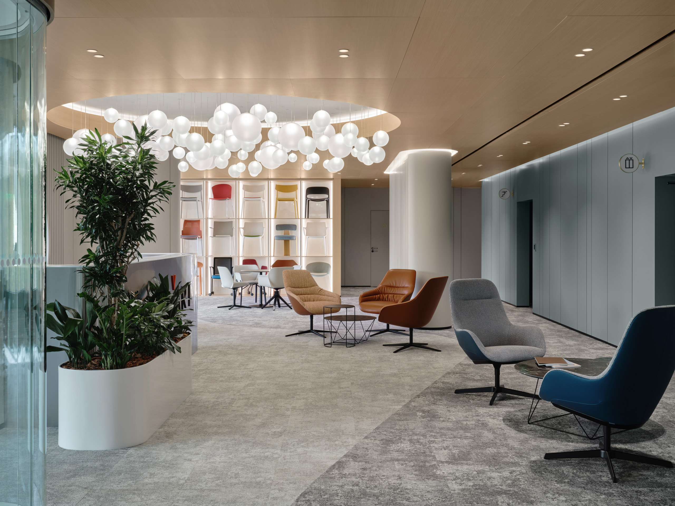 Проект офиса стартовал с комплексного исследования существующих пространств и аналитики пользовательских сценариев Workplace Strategy. На основании данного подхода архитектурное бюро АРХИСТРА выстроило концепцию на пересечении задач бизнеса и запросов всех поколений, в частности, самых требовательных к среде молодых специалистов — представителей Gen Z. Среди ключевых характеристик желаемого рабочего пространства: высокая мобильность, доступ к пространствам для уединения и концентрации, наличие зон для обучения, а также поддержка ментального благополучия через архитектурные и интерьерные решения.