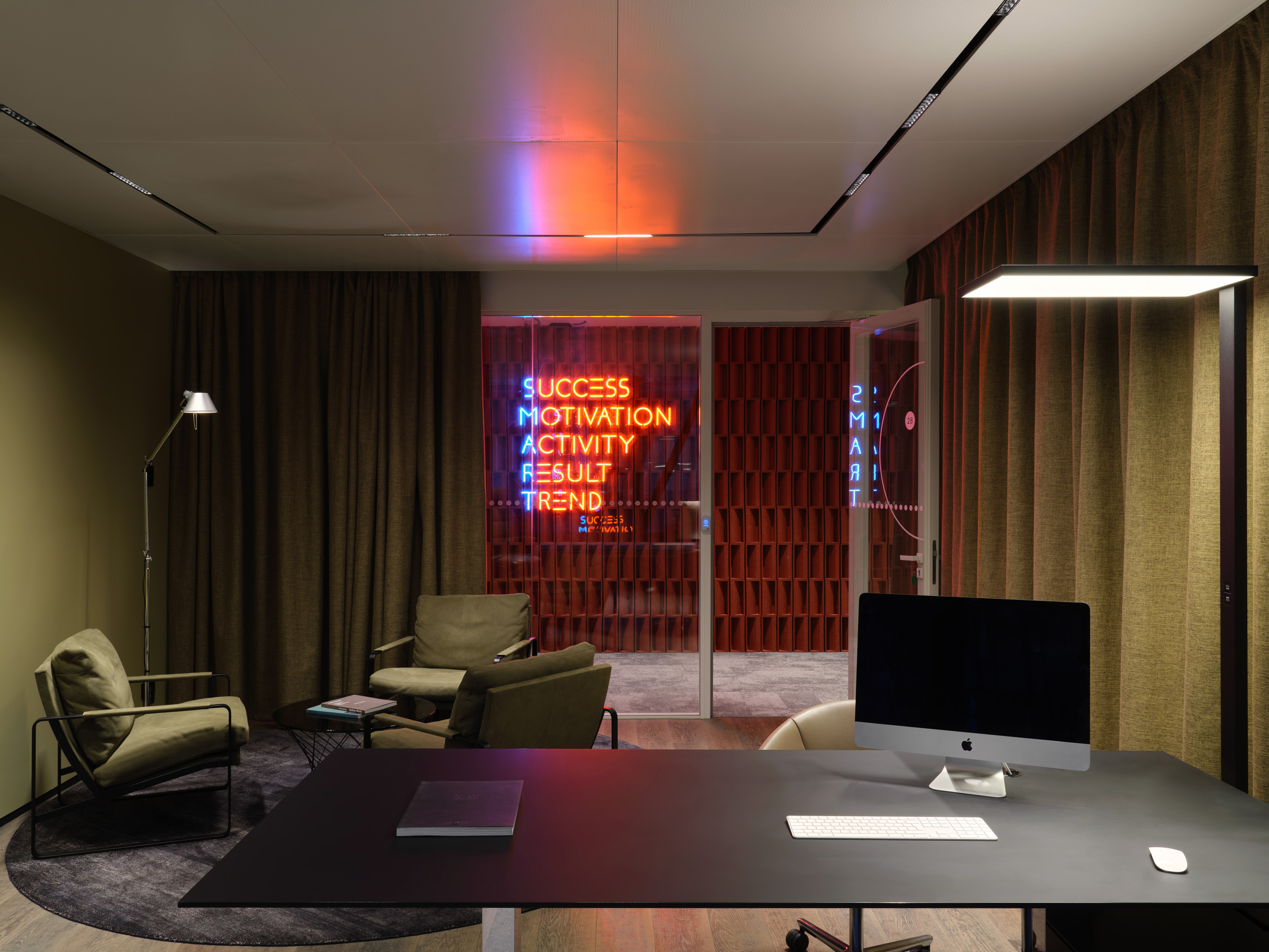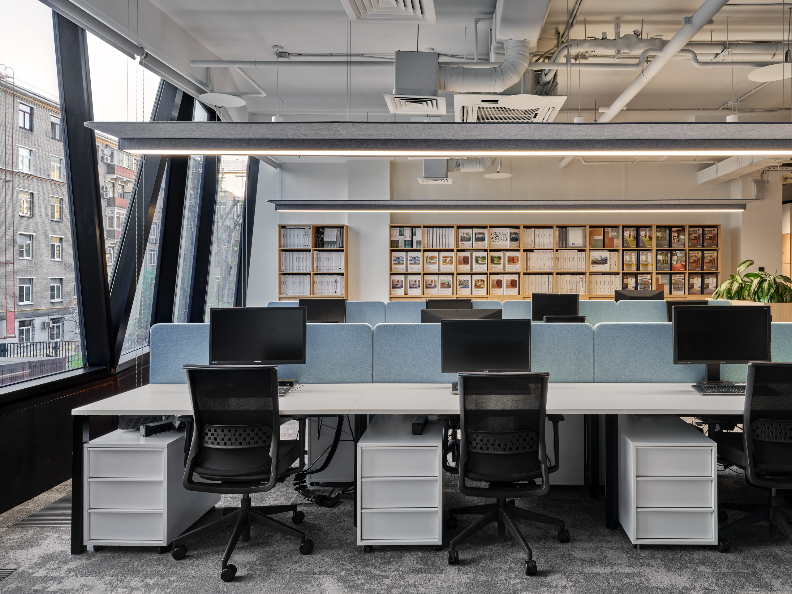 «Когда мы только начинали работу над новым офисом, нам было важно уйти от клише «офис — это рабочие места и переговорные». Мы искали архитектурный язык, через который можно говорить с клиентами, партнерами и командой. Офис получился гибким, открытым и многофункциональным — именно таким, по моему мнению, должно быть пространство для комфортной и продуктивной работы. Особенно приятно, как архитектура стала точкой сотворчества: например, над светильниками мы работали совместно с акустиками и нашли форму, при которой свет и звук обеспечивается одним предметом, – Татьяна Эвич, главный архитектор проекта.