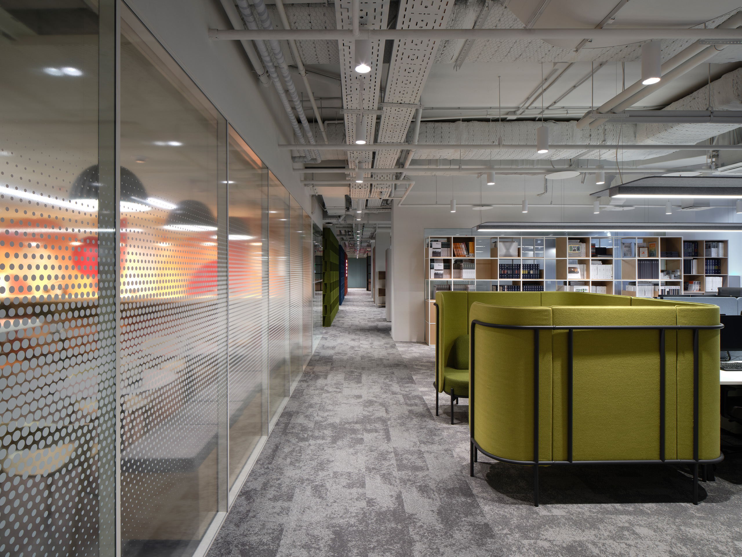 На основе технического задания и стратегических целей компании было разработано сценарное зонирование: клиентская зона, front office и back office. Архитекторы отказались от жестких перегородок в пользу визуально проницаемых границ, используя сочетание отделочных материалов, световых сценариев и мебели для создания интуитивной навигации по пространству.